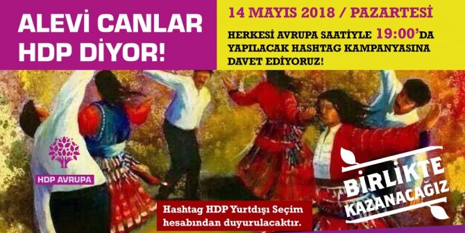 HDP Avrupa sosyal medya üzerinden geliştirdiği seçim kampanyasında bugün Aleviler’i konu ediniyor. HDK Avrupa, Avrupa saati ile 19.00’da Hashtag duyurusunu yapacağını açıkladı.