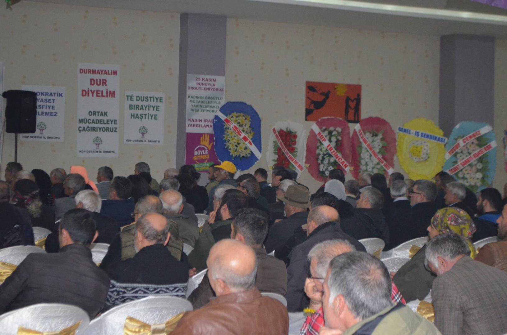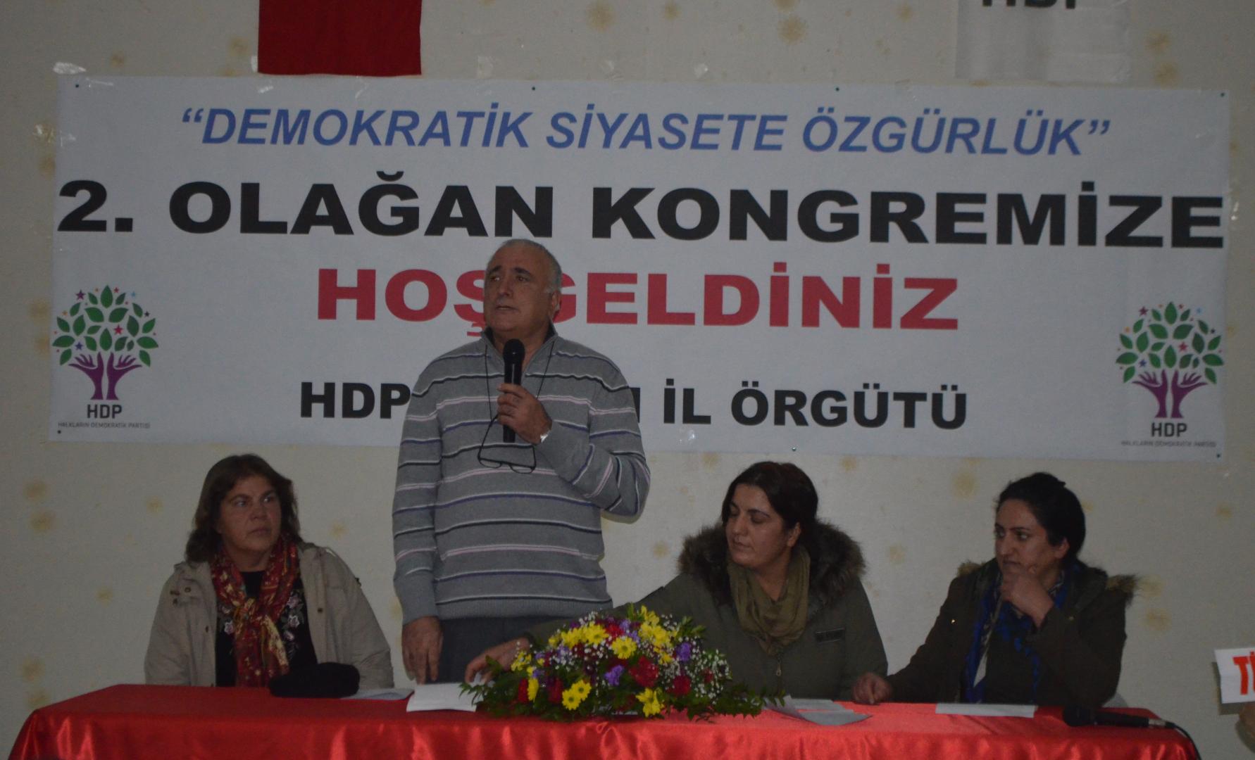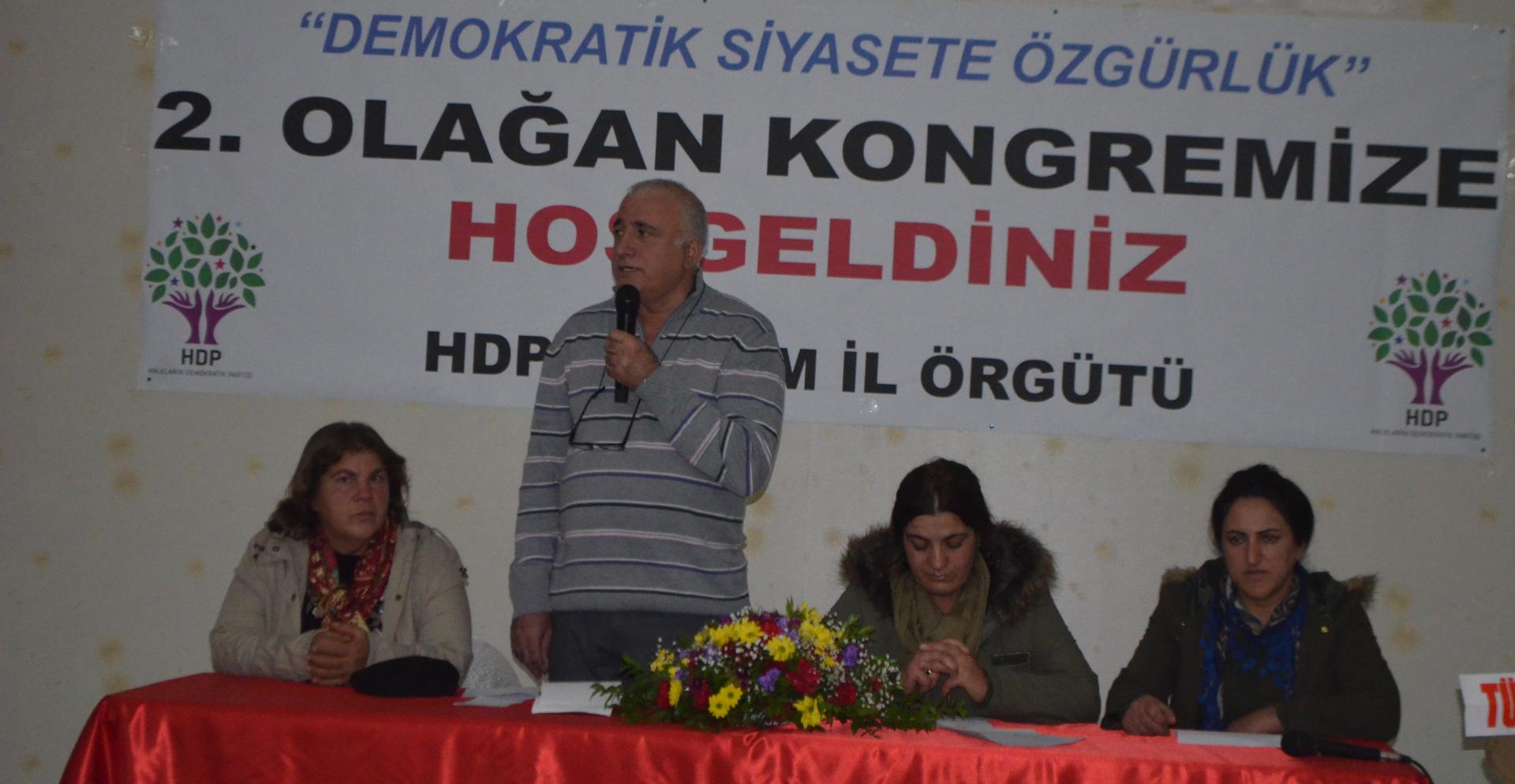 Kongrede konuşma yapan HDP Dersim Milletvekili Alican Önlü, “15 Kasım 1937’de soykırımı, 4 Kasım’da HDP Eşbaşkanları ve milletvekillerinin tutuklanmasını, 26 Kasım Sait Kırmızıtoprak’ın katledilmesini lanetliyorum” ifadelerini kullandı.