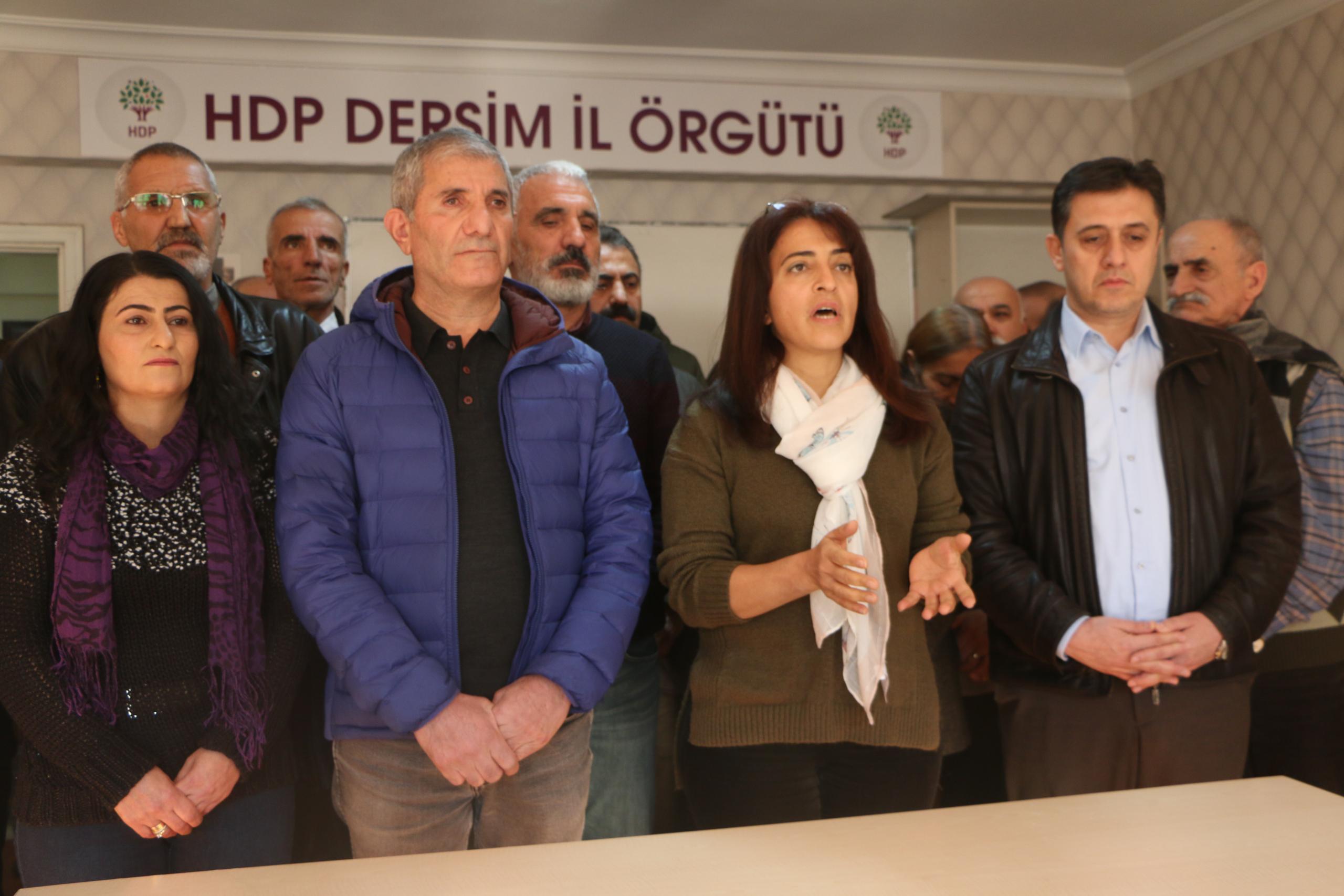 HDP İstanbul İl Binasına yapılan saldırıya karşı eş zamanlı olarak bir çok ilde basın açıklaması yapıldı. Dersim’de yapılan açıklamada HDP Dersim İl Eş Başkanı Nurşat Yeşil, bu saldırı bir kişinin yaptığı birşey olmadığını, saldırganın ateş açtıktan sonra karakola sığınması olayın arkasında kim olduğunu gösterdiğini söyledi.