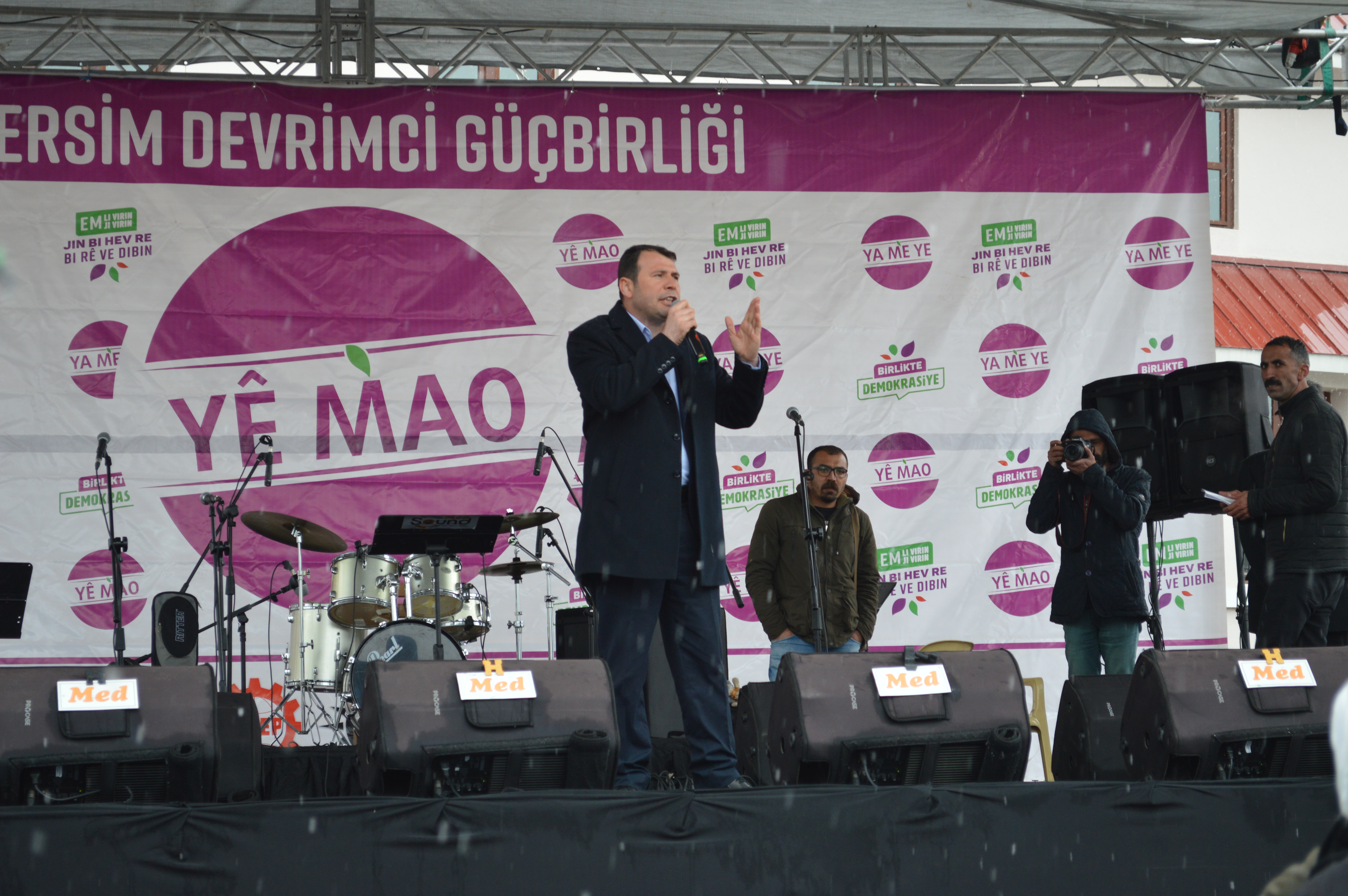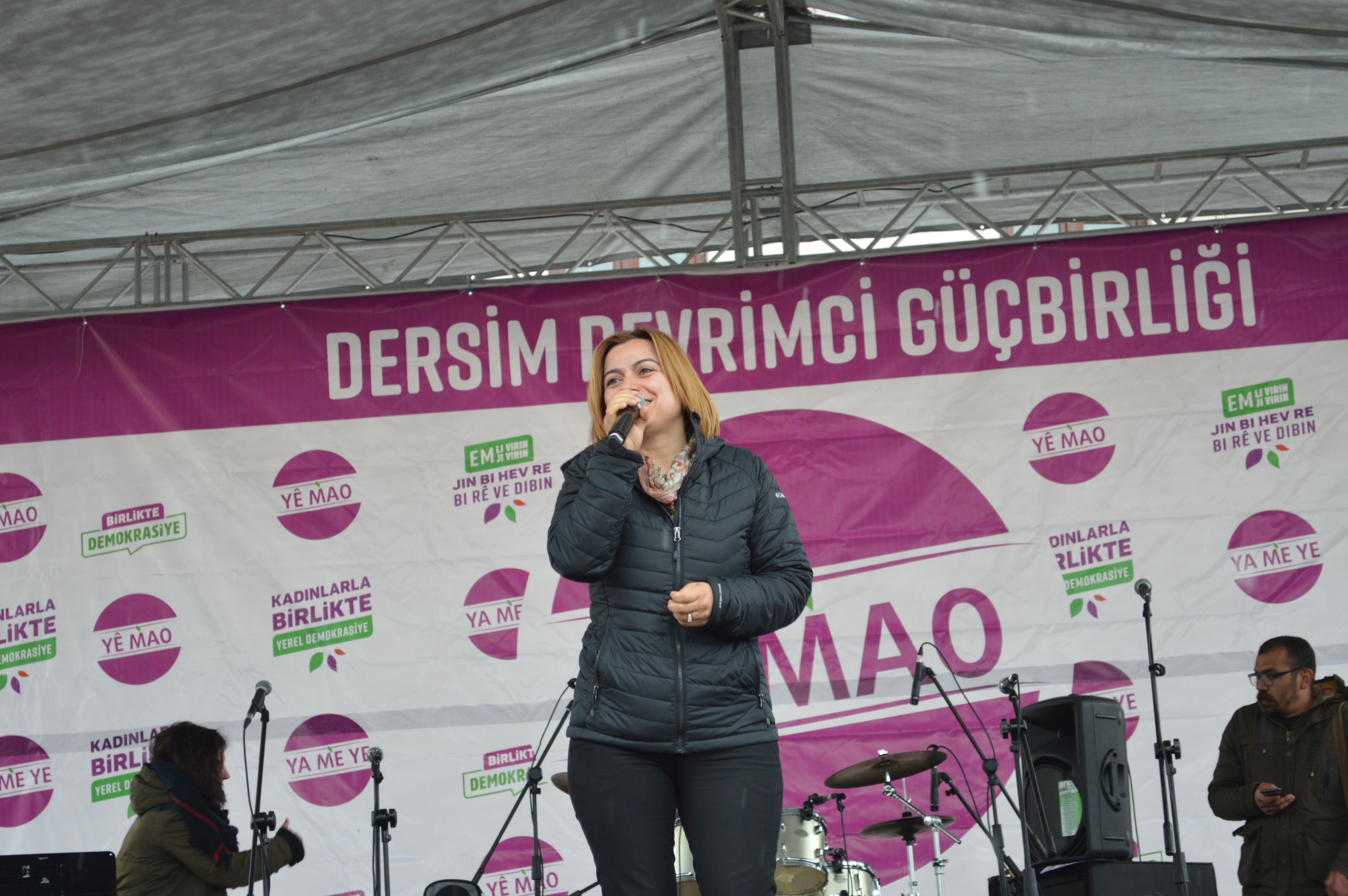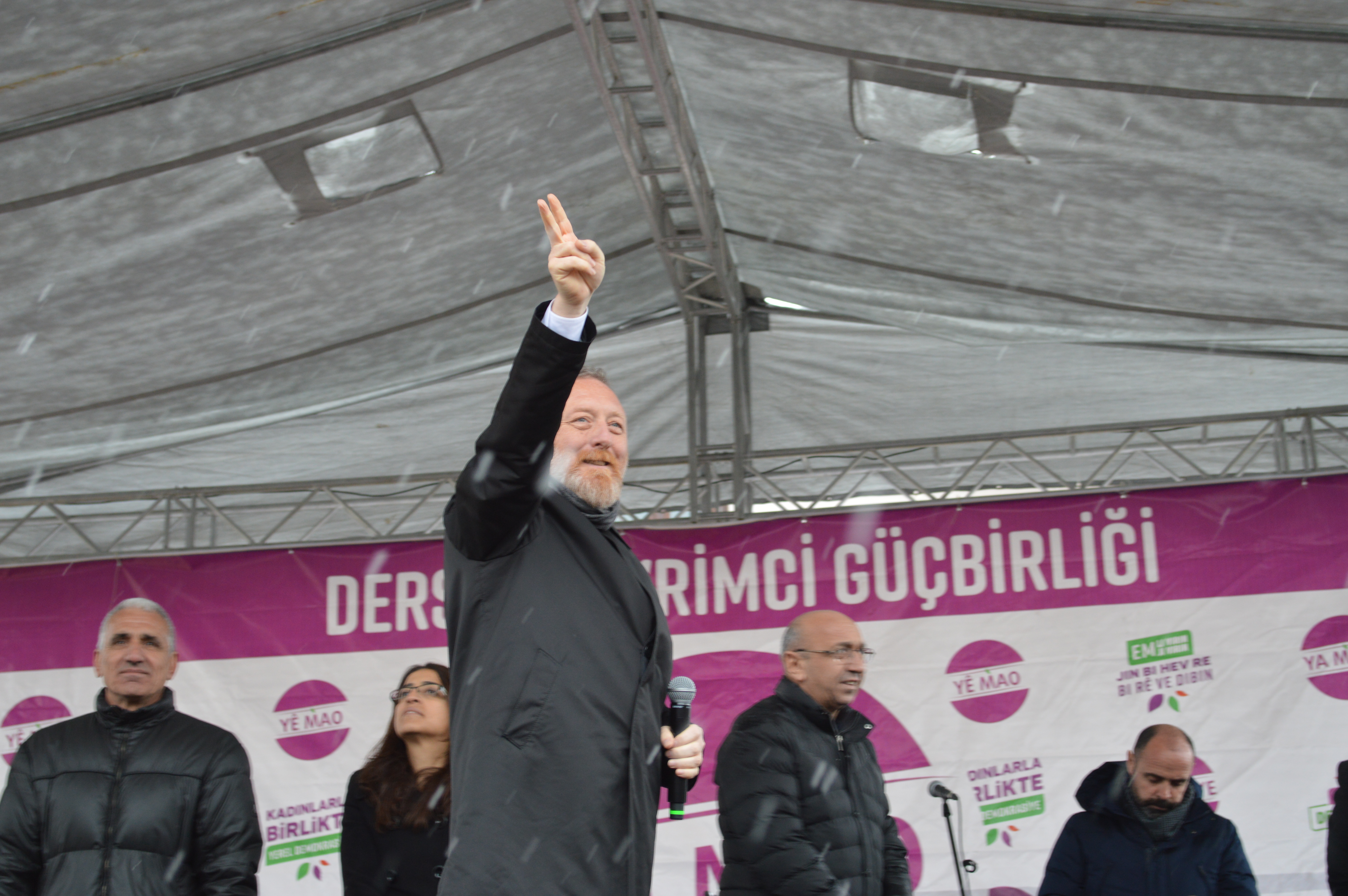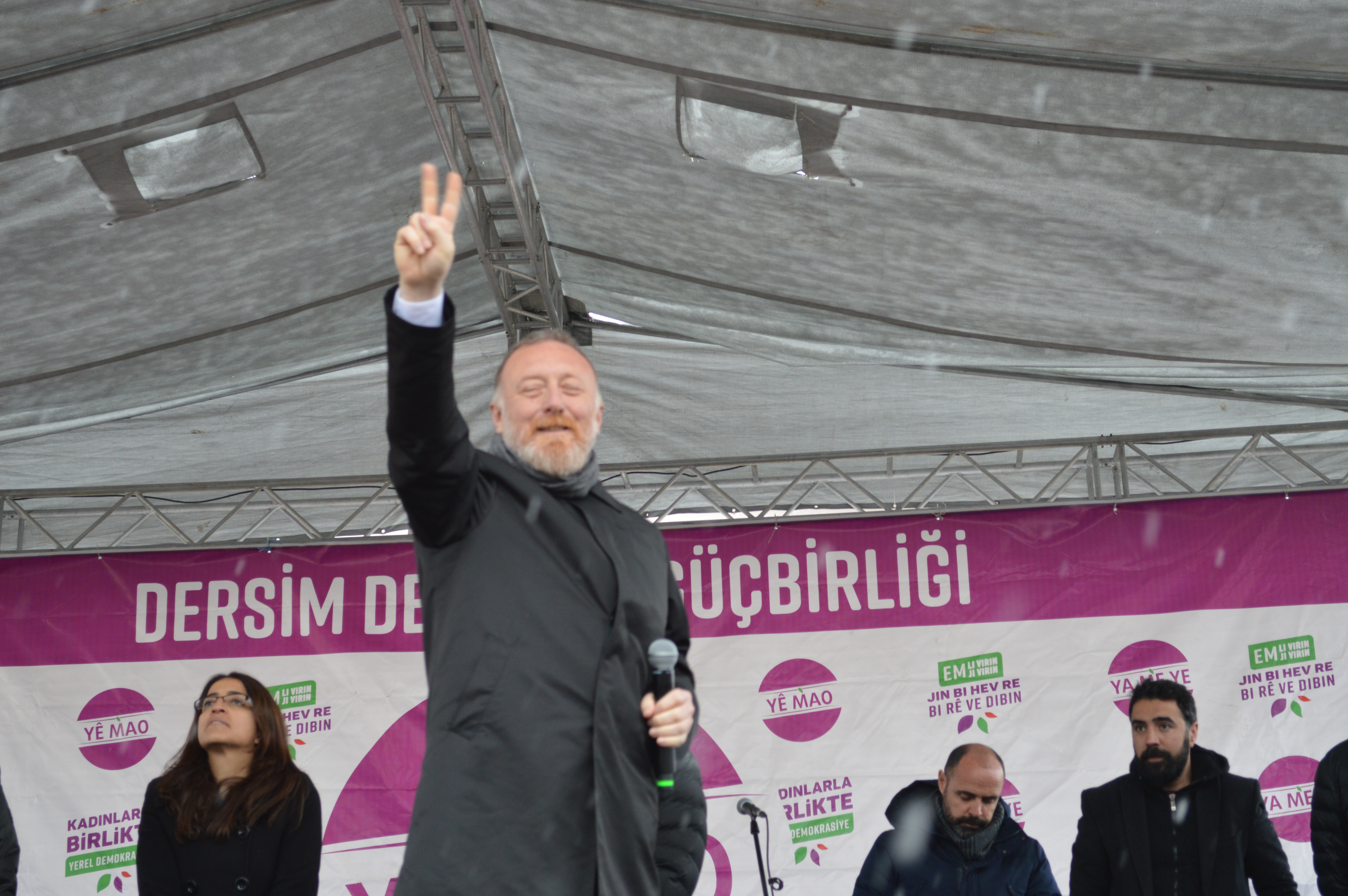 DBP Eş Genel Başkanı Mehmet Aslan ise tecrite karşı direnen siyasetçiler Selma Irmak, Leyla Güven ve Sebahat Tuncel’e selam göndererek konuşmasına başladı. Aslan, “Bizler 31 Mart sonrası burada elde edeceğimiz zafer mitinginde konuşmak istiyoruz. Dersim’de zaferi elde edeceğiz, şimdiden zaferinizi kutluyorum” dedi.