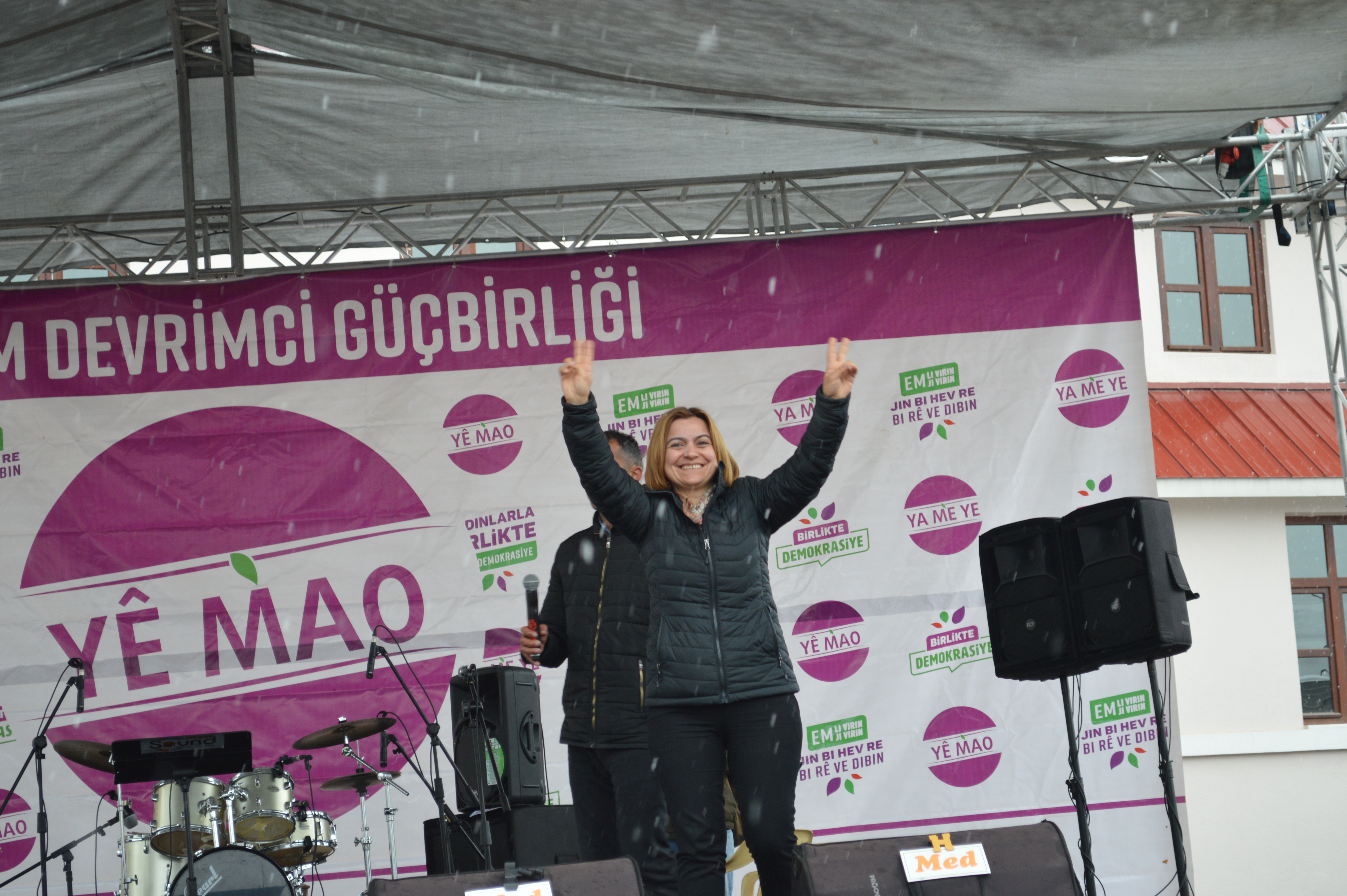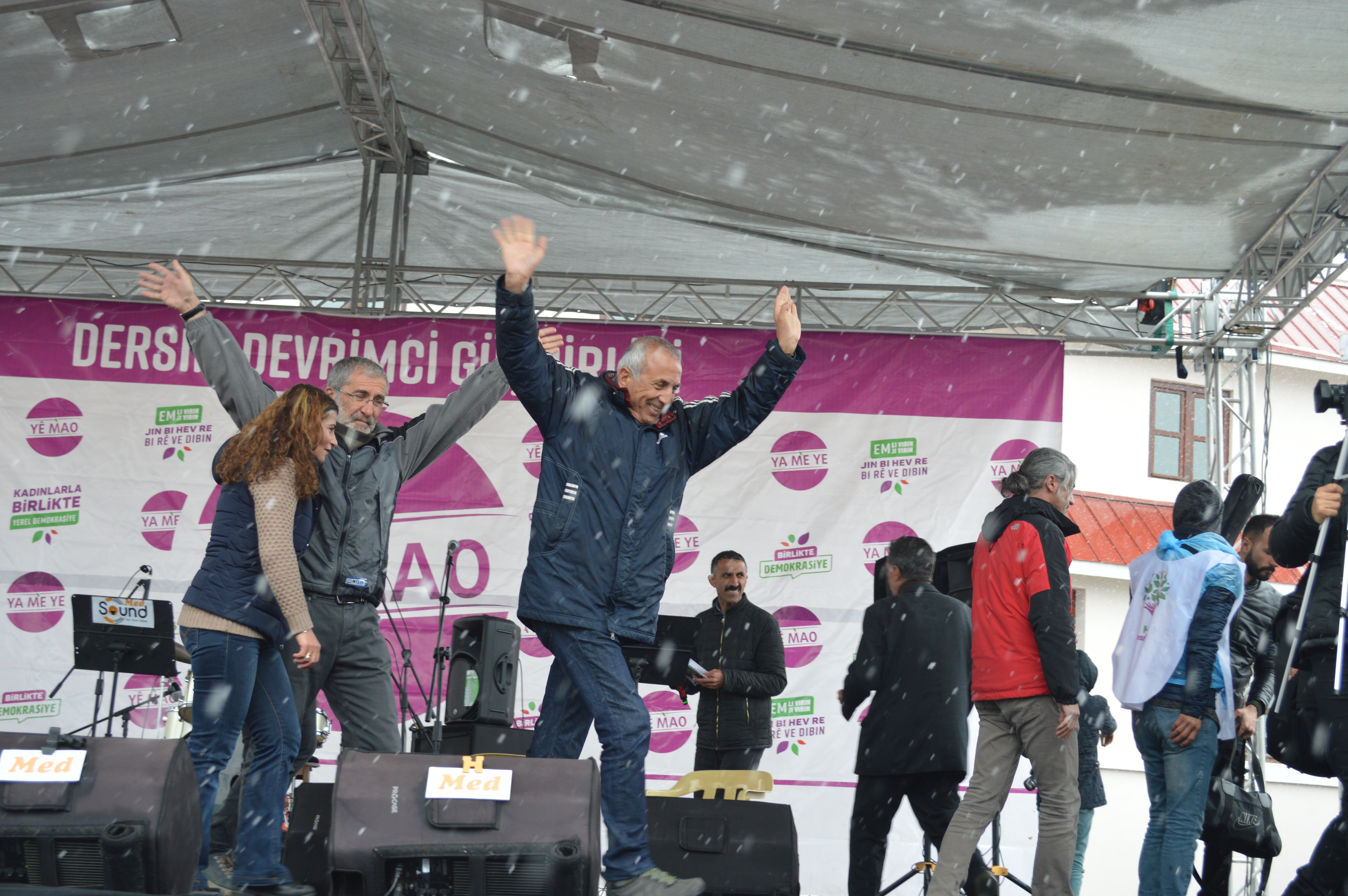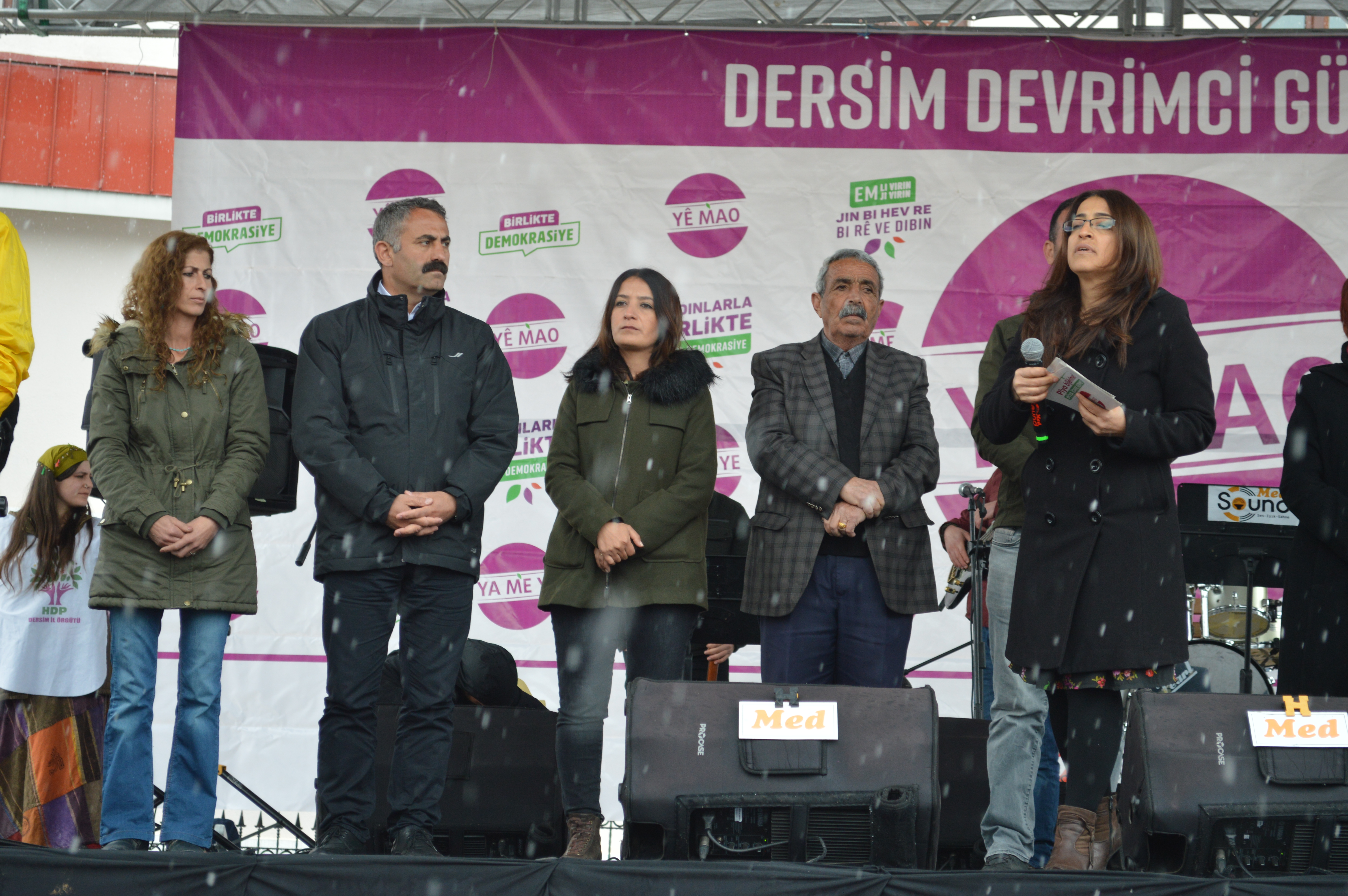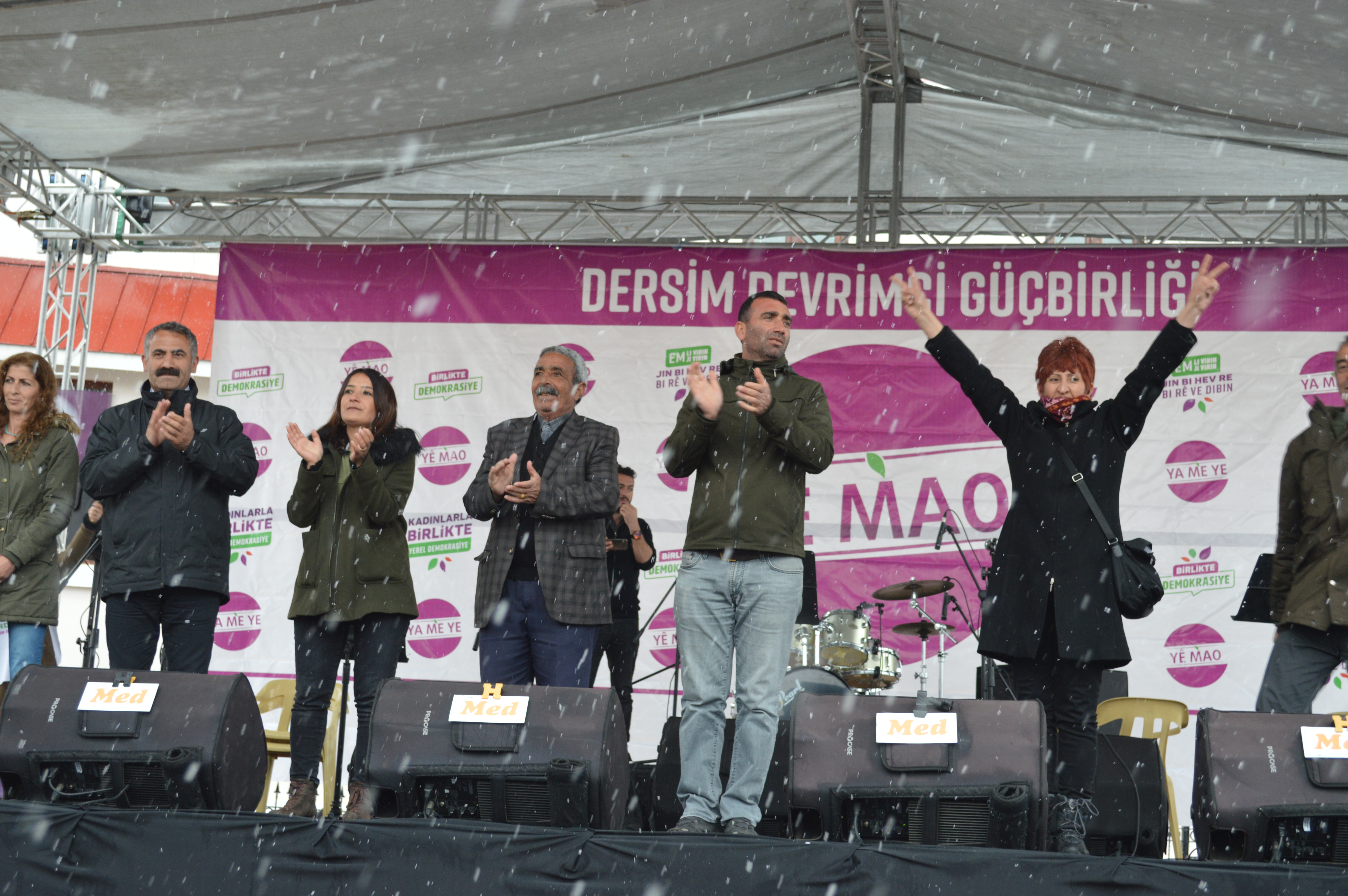 DBP Eş Genel Başkanı Mehmet Aslan ise tecrite karşı direnen siyasetçiler Selma Irmak, Leyla Güven ve Sebahat Tuncel’e selam göndererek konuşmasına başladı. Aslan, “Bizler 31 Mart sonrası burada elde edeceğimiz zafer mitinginde konuşmak istiyoruz. Dersim’de zaferi elde edeceğiz, şimdiden zaferinizi kutluyorum” dedi.