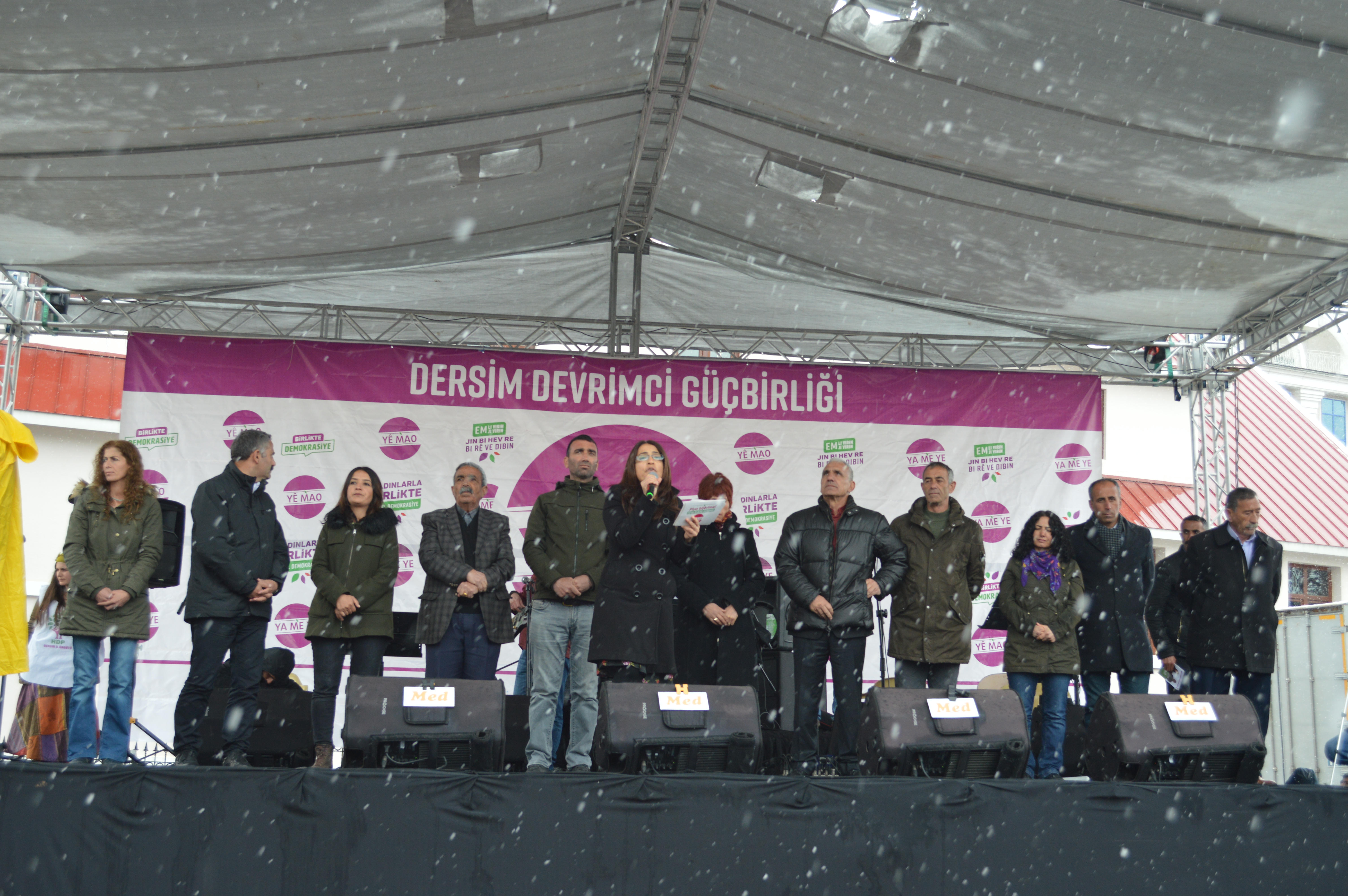 “Her yolcuyu misafir edendir Dersim, şifa bulunan topraklardır Dersim, sevgiyi, hürmeti senden öğrendik Dersim. Suyundan içen herkes bilir ki; zulme, haksızlığa, boyun eğmemek vardır Dersim’de. Başımız dik, yüreğimiz avucumuzda duruyoruz karşınızda. Dersim direniş mirasını omuzlamıştır. Görkemli bir kadın mücadelesinin mirasçılarıyız.”