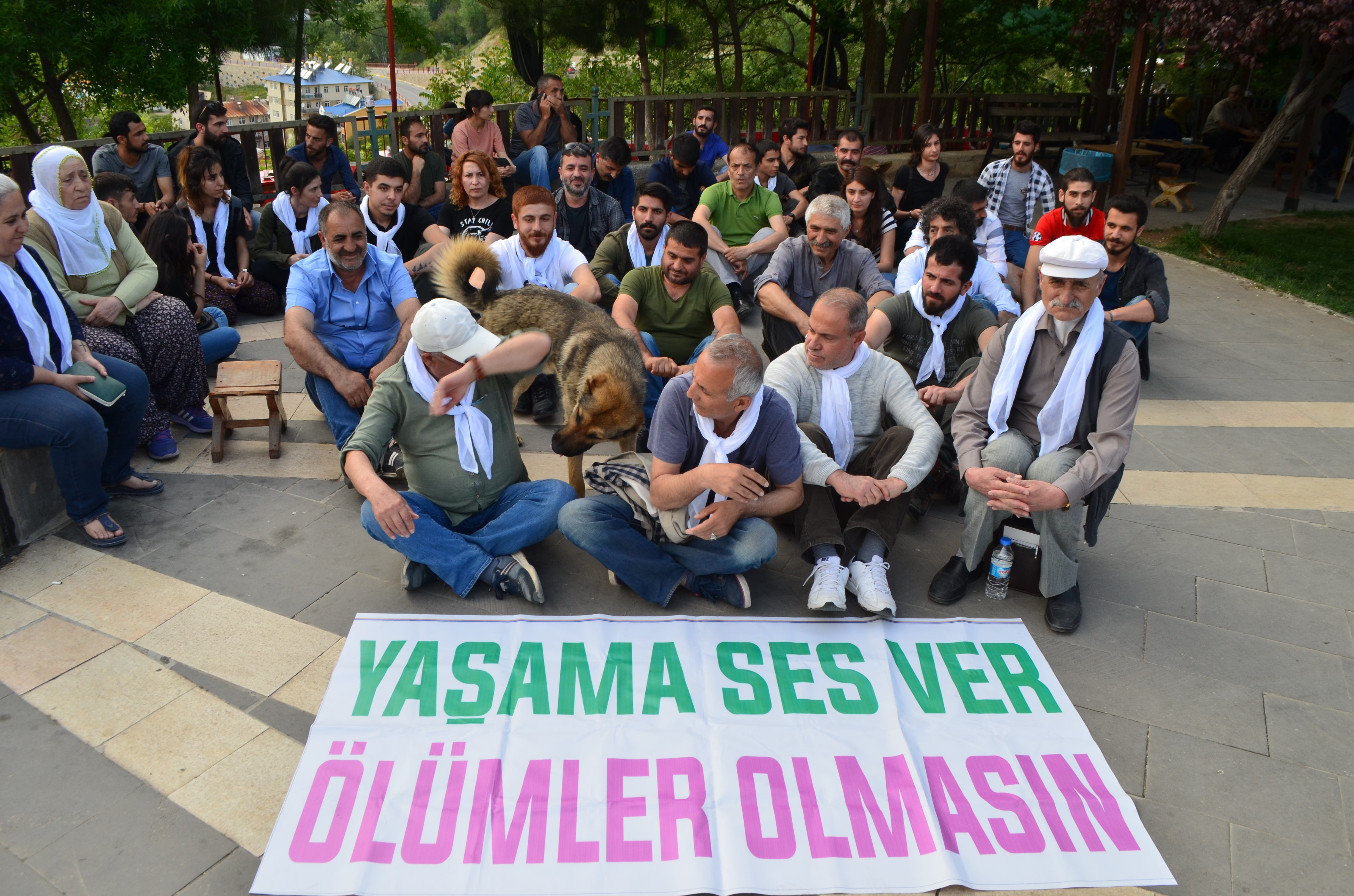 Seyit Rıza Meydanı’nda gerçekleşen eyleme HDP il eş başkanları, PM üyesi Ferhat Yıldız, siyasi parti ve kurum temsilcileri, sanatçı Metin Kahraman ve çok sayıda yurttaş katıldı.