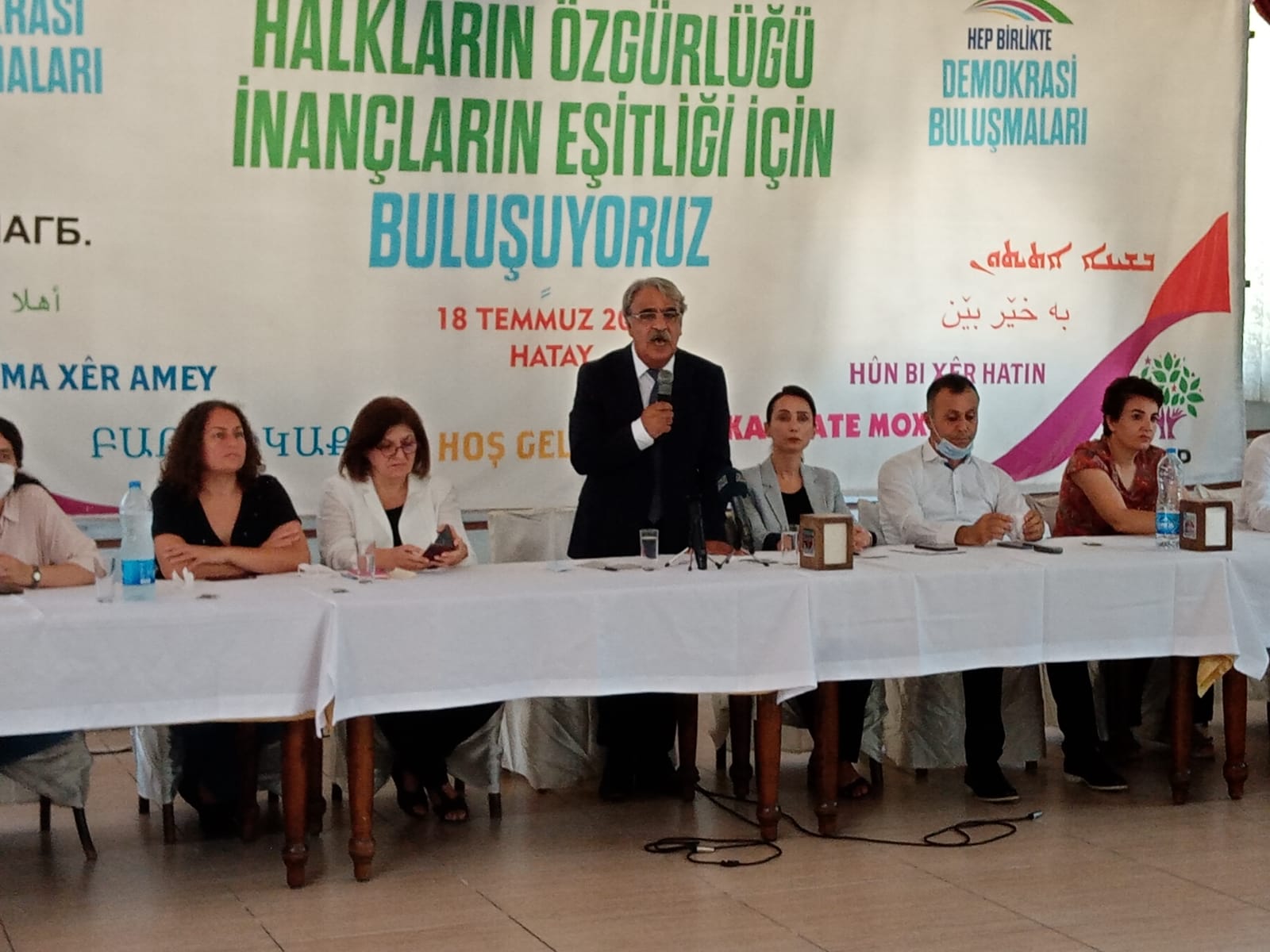 Halkların Demokratik Partisi (HDP) “Hep Birlikte Demokrasi Buluşmaları” kapsamında “Halkların Özgürlüğü, İnançların Eşitliği için Buluşuyoruz” şiarıyla Hatay’da “Halklar ve İnançlar Buluşması” gerçekleştirdi. Buluşmaya HDP Eş Genel Başkan Mithat Sancar, HDK Eş Sözcüsü İdil Uğurlu’nun yanı sıra halklar ve inançlar temsilcileri katıldı.