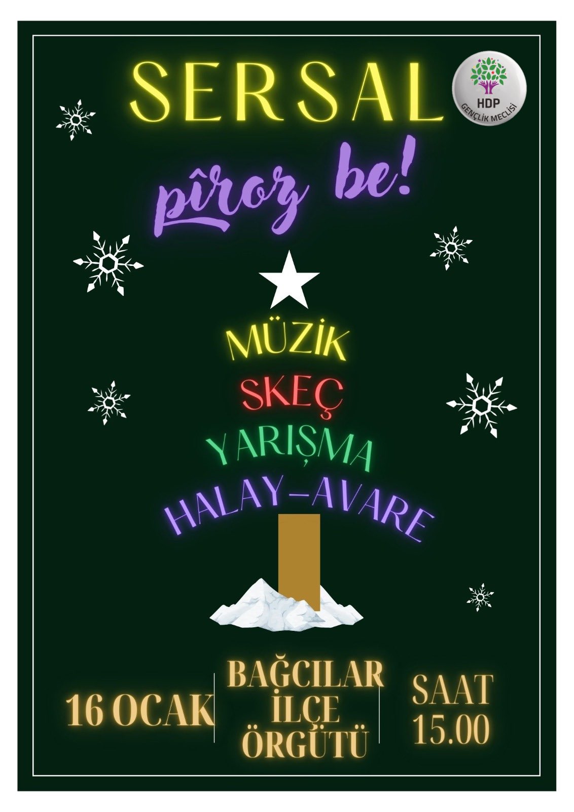 Halkların Demokratik Partisi (HDP) Gençlik Meclisleri İstanbul-Bağcılar’da ilçe binasında yeni yıl etkinliği Sersal/Gaxan düzenlendi. Etkinlik saygı duruşu ile başladı. Ardından gençlerin kendi hazırladıkları senaryo ile tiyatro oynandı. Oynanan komedide Türkiye metropollerine gelmiş bir Kürt ailenin yoksulluğu işlendi.