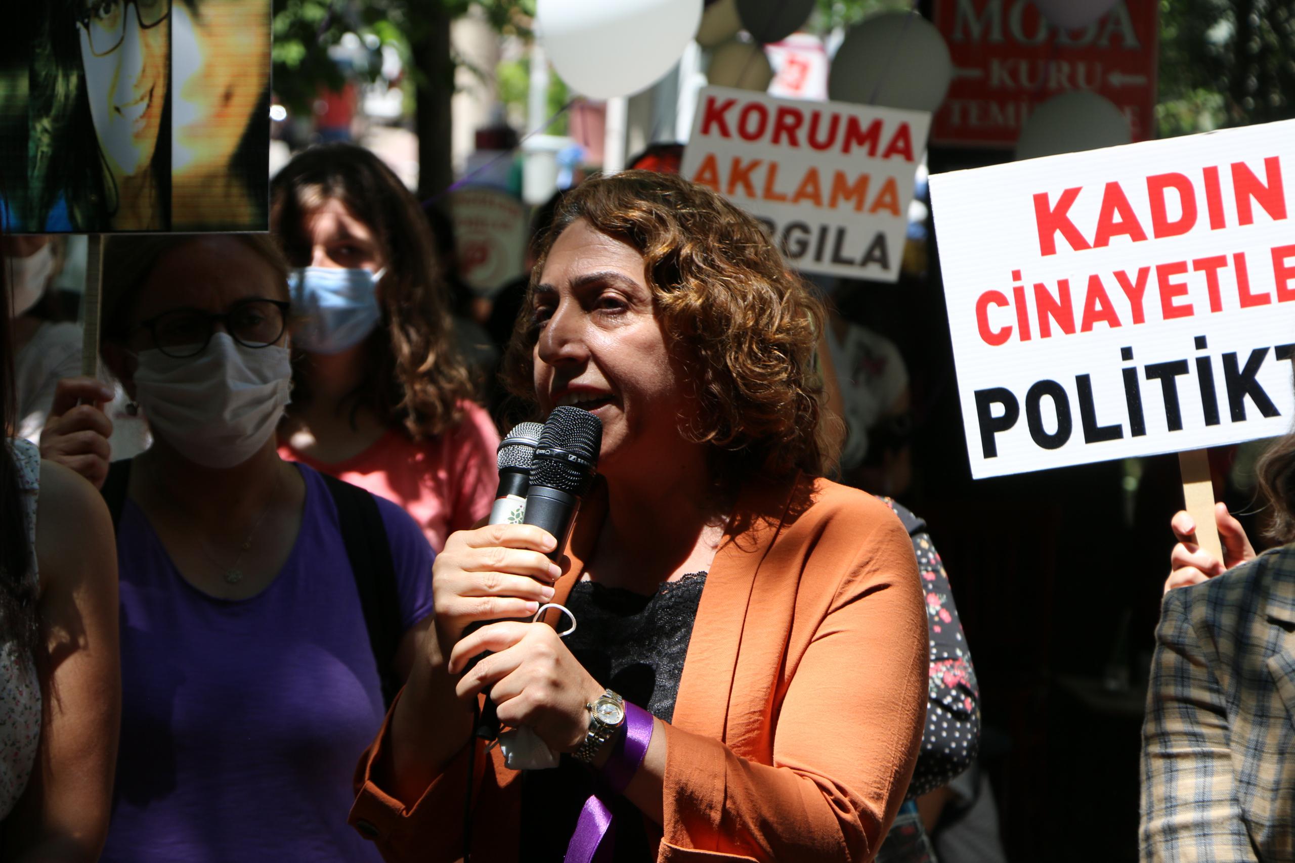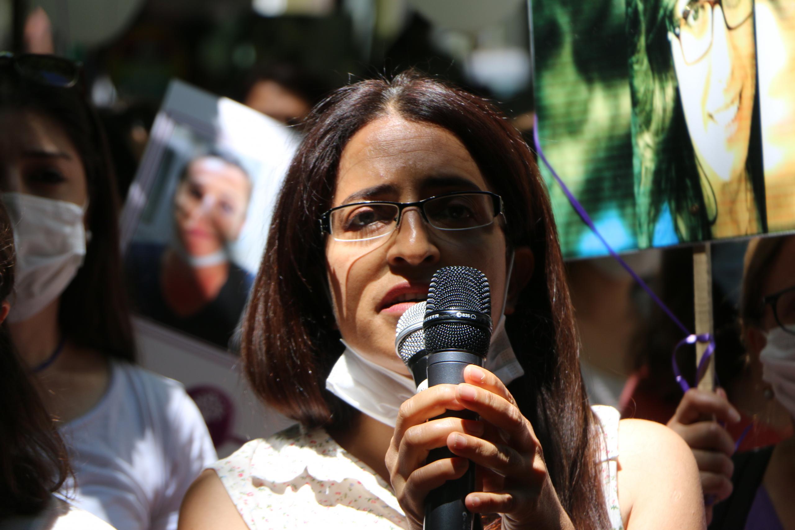 DBP Eş Genel Başkanı Saliha Aydeniz de Gülistan Doku’nun kaybettirilmesine dikkat çekerek, “Onu kaybettirenler onu bulsunlar. Kadınlar sizin korkulu rüyanız olmaya devam edecekler. Bütün saldırılarınıza rağmen kadınlar ayakta ve mücadele etmeye devam ediyor” diye konuştu. Demokratik Yerel Yönetimler Kurulu üyesi Rojbin Çetin’e yönelik yapılan işkenceyi de hatırlatan Aydeniz, “Biz Diyarbakır Cezaevi’nde işkencecilerin yüzüne tüküren Sara’nın yoldaşlarıyız, işkenceciler bunu unutmasın” dedi.