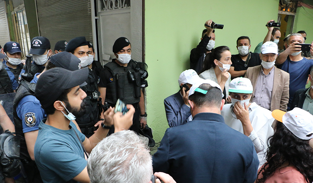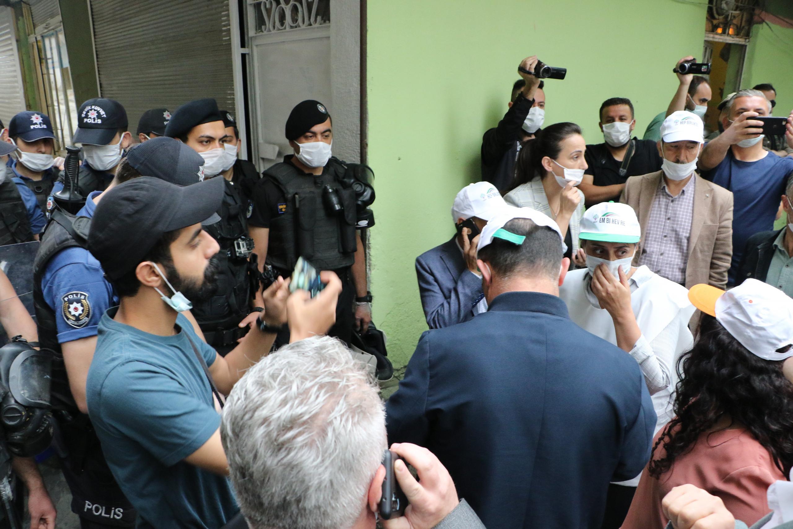Yürüyüş öncesi HDP Eş Genel Başkanı Mithat Sancar’ın açıklama yapacağı partinin il binası da abluka altına alındı. Binaya giden sokaklara kalkanlarla barikat kuran polis, milletvekilleri ve yurttaşların il binasına giriş çıkışlarını engelledi.