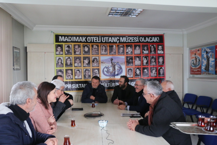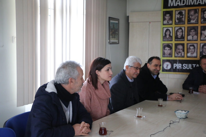 Pir Sultan Abdal Kültür Derneği (PSAKD) Genel Başkan Yardımcısı Erol Yeter ve yönetici Murat Demiray’ın tahliye edilmelerinin ardından HDP Haklar ve İnançlar Komisyonu üyesi İstanbul Milletvekili Ali Kenanoğlu, HDP Ankara İl Eş Başkanı Hüseyin Gevher, Pir Sultan Abdal Kültür Derneği (PSAKD) ve Alevi Bektaşi Federasyonu’nu (ABF) ziyaret ederek geçmiş olsun dileklerinde bulundu.