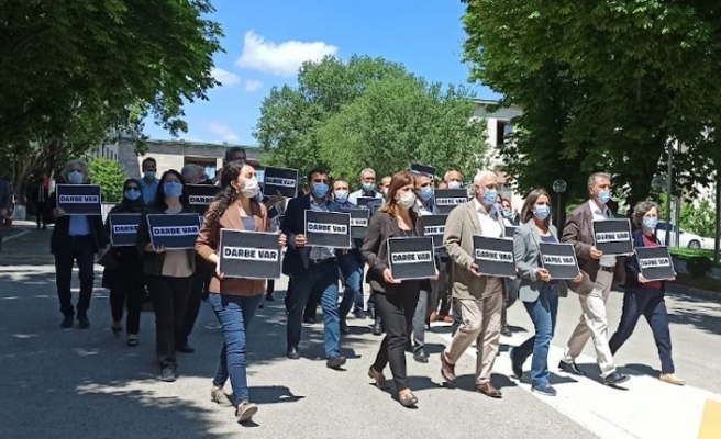 Milletvekillerinin “Darbe Var” dövizleri taşıdığı açıklamada konuşan HDP Grup Başkanvekili Meral Danış Beştaş, “4 Kasım 2017’de başlayan darbe 27. Dönem’de de devam ediyor” dedi. HDP’nin gücünü haklılığından aldığını belirten Beştaş, darbeciliğe boyun eğmeyeceklerini, demokrasi mücadelesini sürdüreceklerini kaydetti.