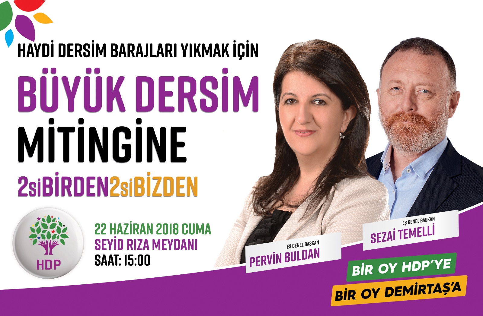 Halkların Demokratik Partisi, 22 Haziran Cuma günü saat 15.00’de Dersim Seyit Rıza Meydanı’nda ‘Haydi Dersim barajları yıkmak için’ şiarıyla miting gerçekleştirecek.