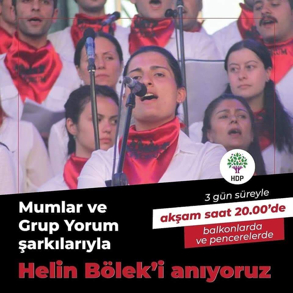 Halkların Demokratik Partisi, 3 gün süreyle saat 20.00’de evlerde mumlar ve Grup Yorum türküleriyle Grup Yorum üyesi Helin Bölek’i anmak için çağrı yaptı.