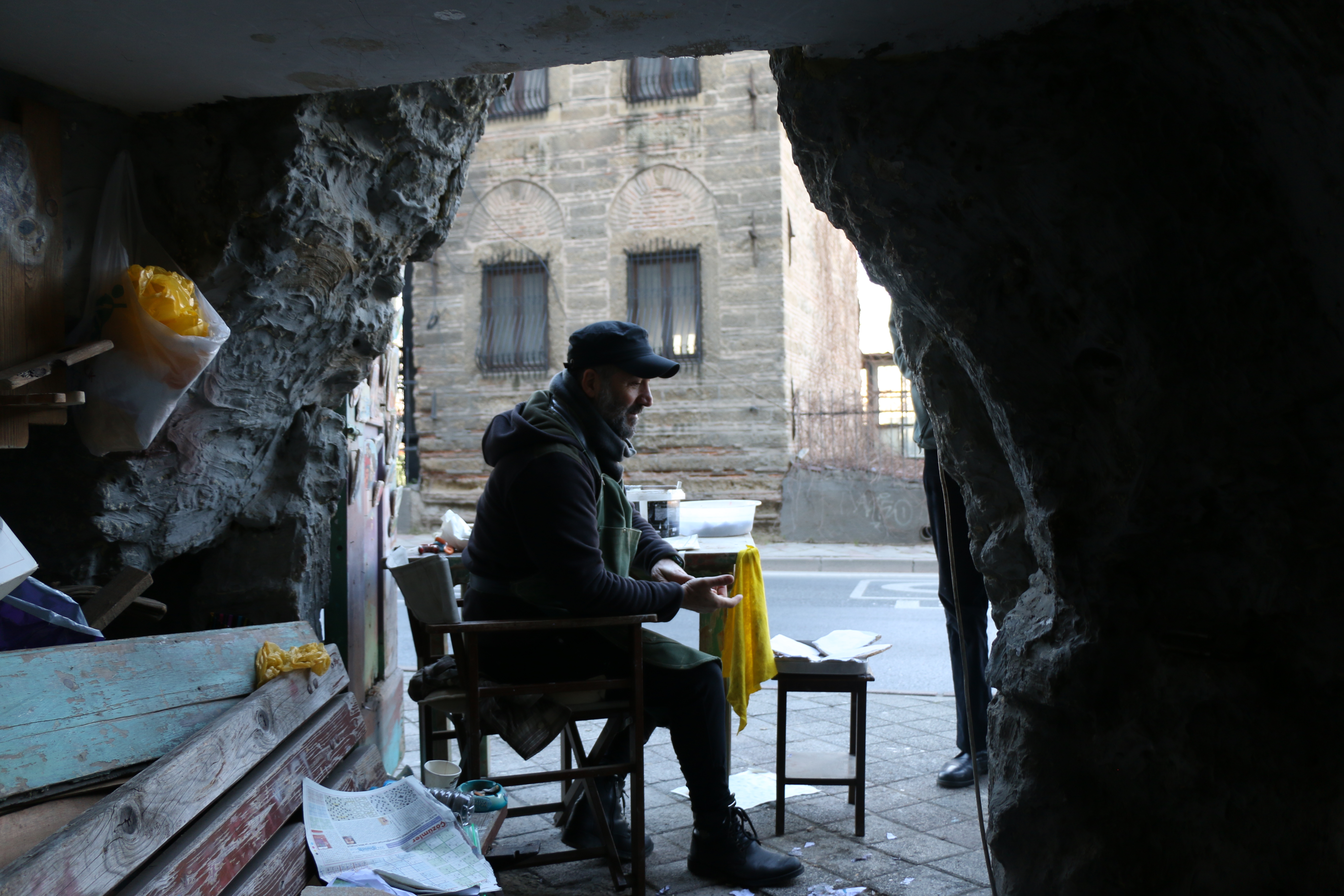 Atölye, yaya ve araçların geçiş güzergahında. Birçok gözün üzerinde olduğu bu dükkanı Mehmet usta tiyatro salonu olarak görüyor: “Hep aklıma tiyatro sahnelerinde oyun oynayan insanlar ve onu seyreden insanlar geliyor. Hep onları psikolojilerini merak etmişimdir. Bu aslında tek kişilik bir oyun sahnesi gibi. Ama seyirciler değişen ve on binler. Dolayısı ile benzer bir psikoloji yaşıyorum. Ancak çalışmalarımı filan olumsuz yönde etkilemiyor.”