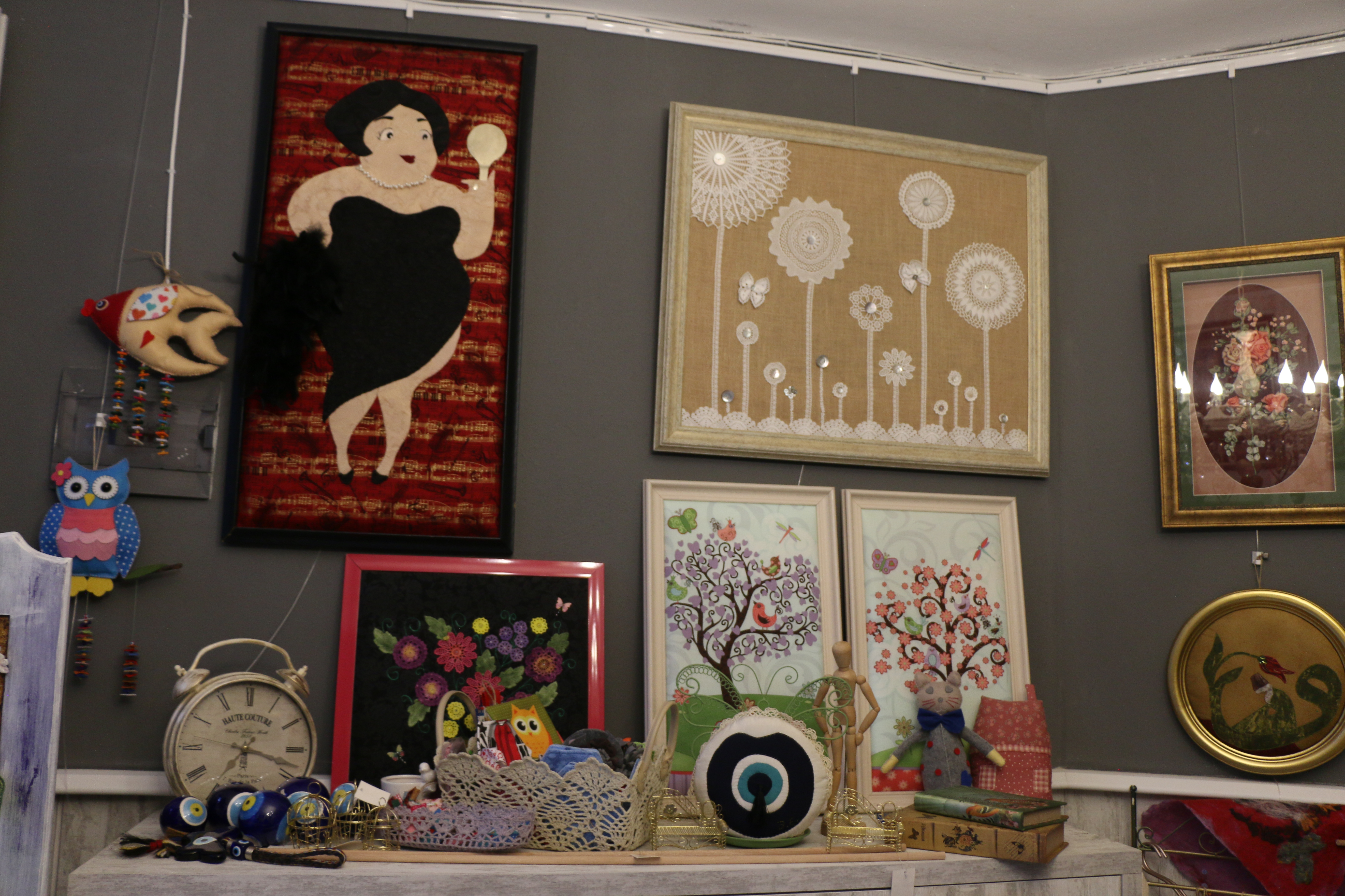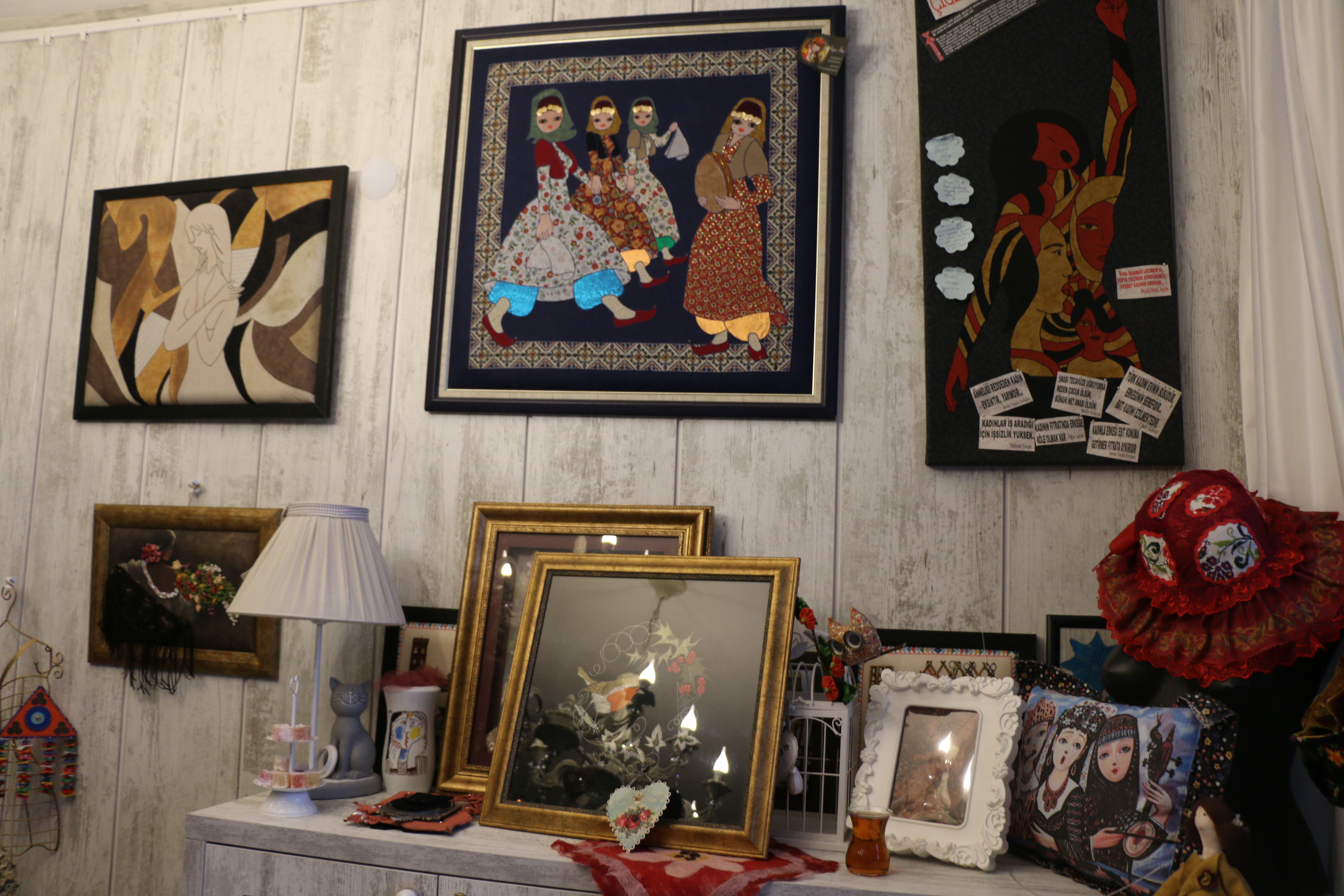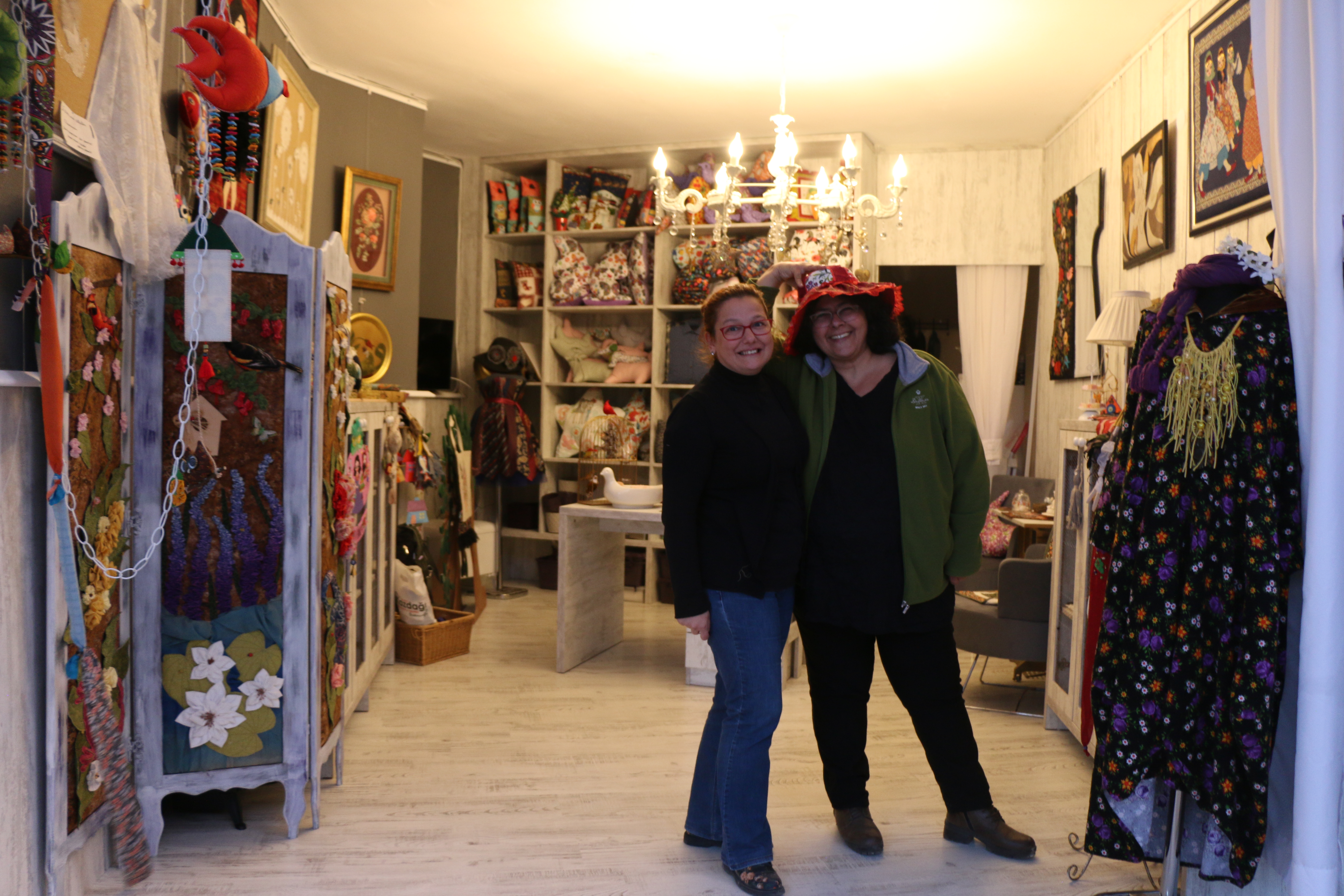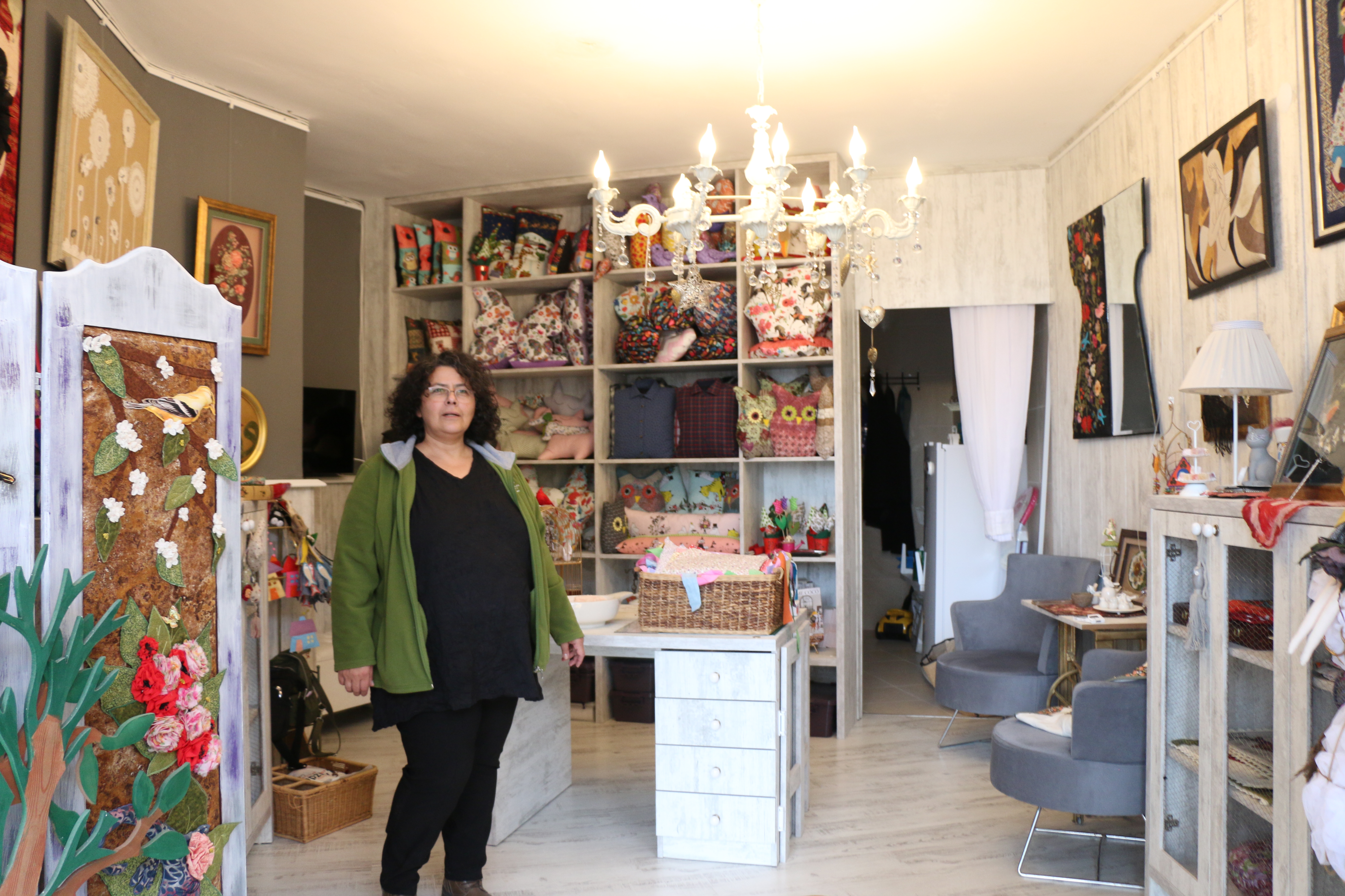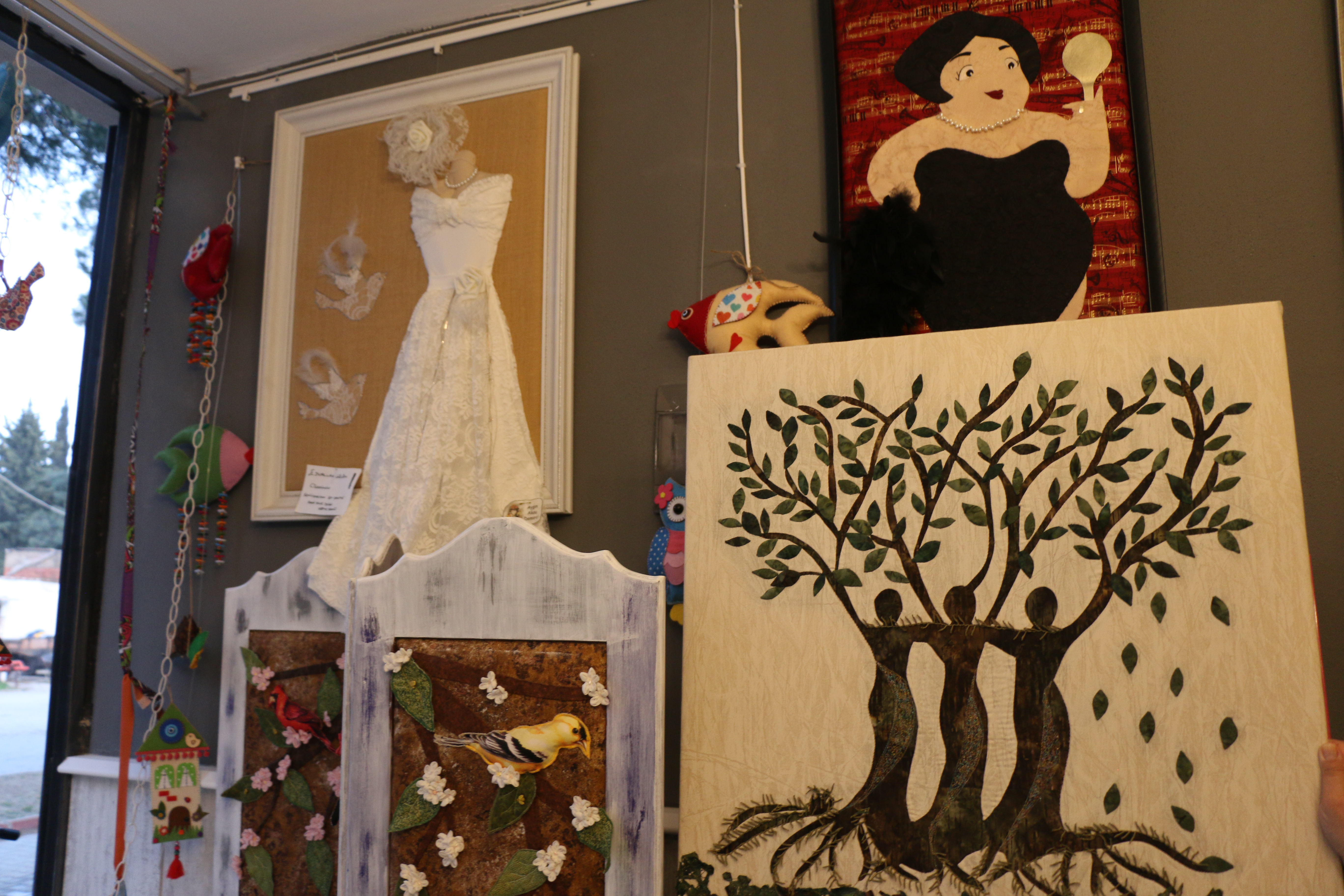 Dedik ya ders vermek yetmemiş onlara. Bir de bunu sergilemek isteyecekleri bir dükkan açmışlar. Önceleri böyle küçük bir köyde atölye fikrine arkadaşları sıcak bakmasa da Aksu ısrarcı olmuş.