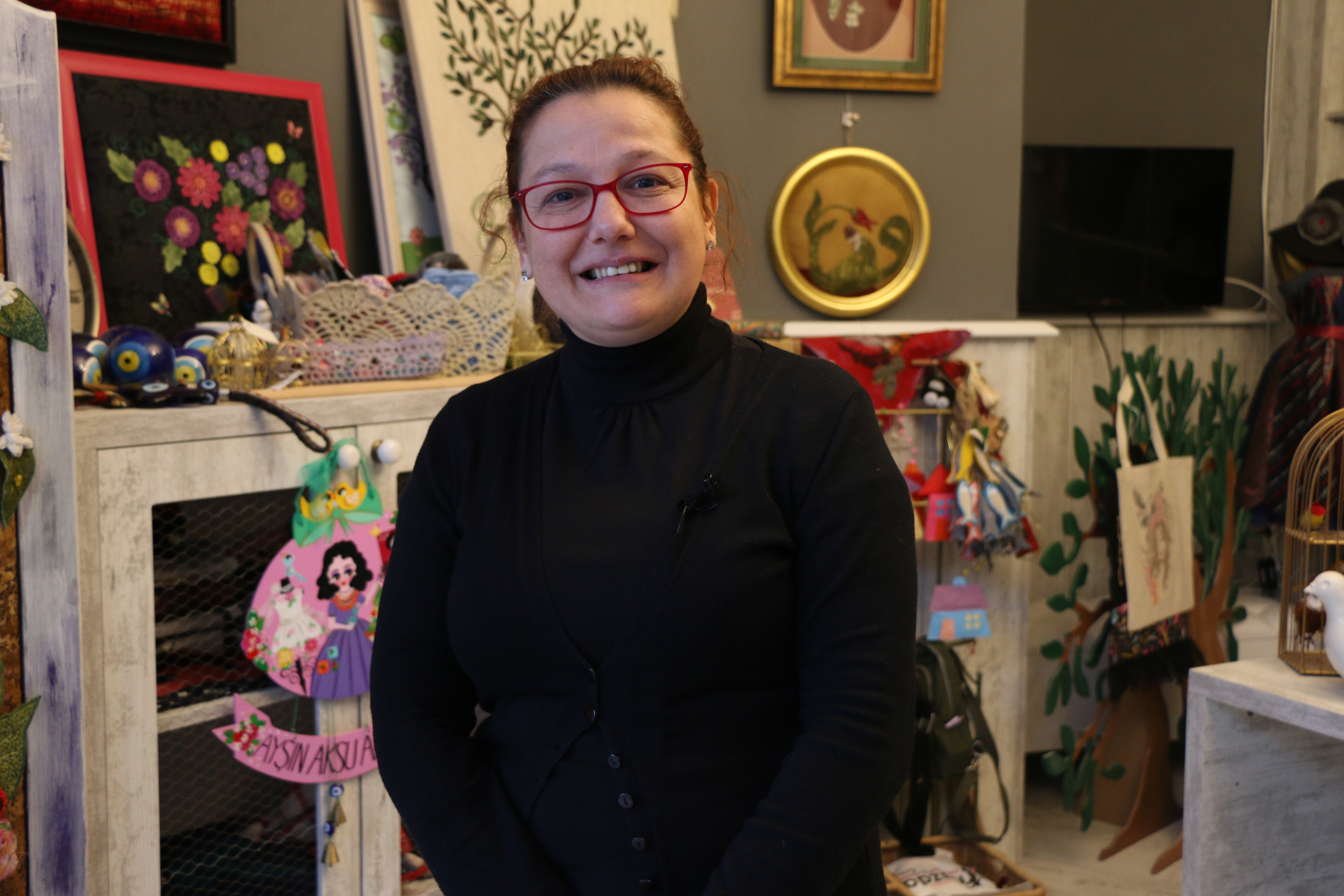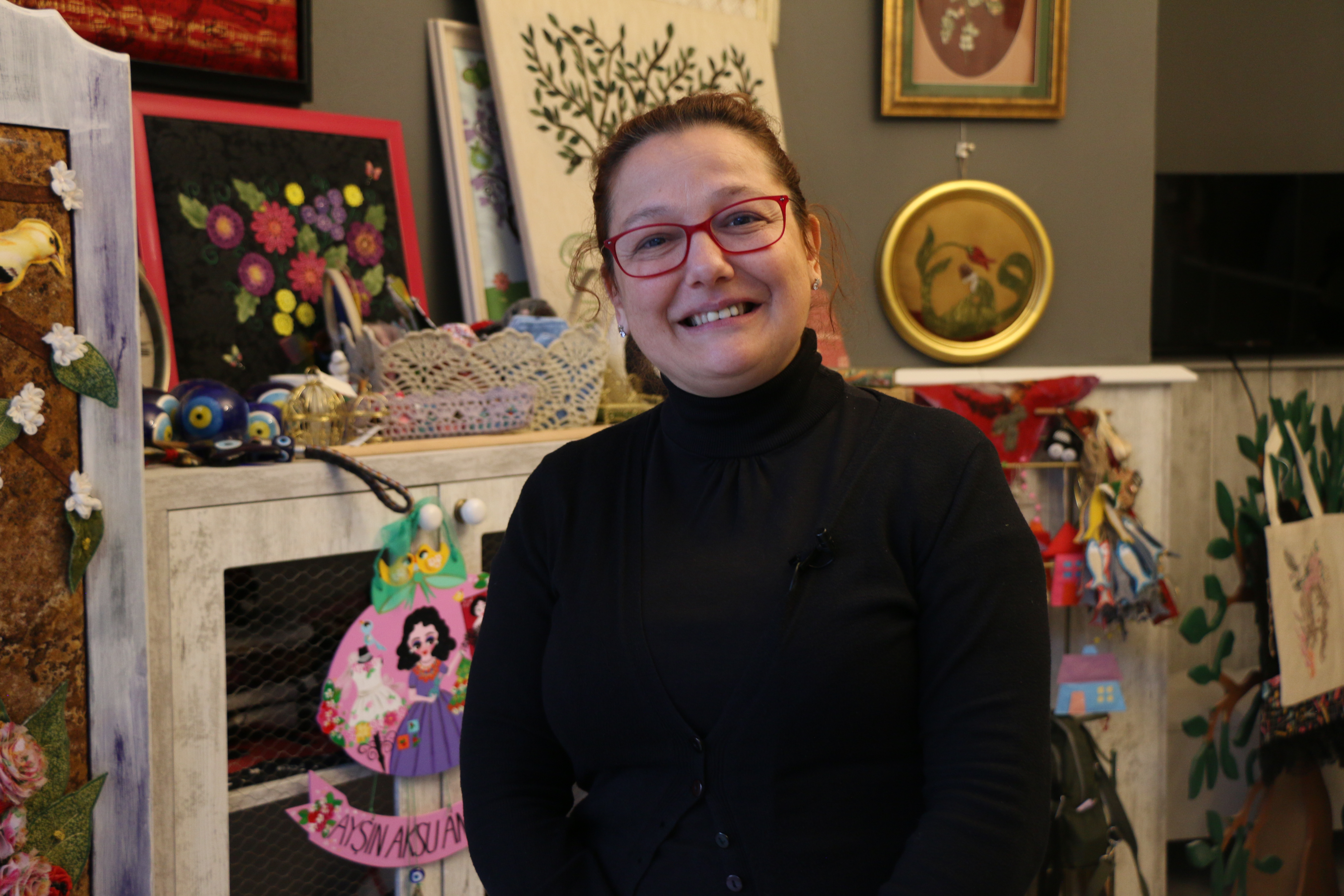 “Yıllarca çalışma hayatının verdiği tempo bir anda düştü. Fakat bu düşüşle birlikte de üretmek isteği doğdu. El sanatları da okumanın verdiği bir güçle bir şeyler üretmek var etmek istedim. Evde de bir şeyler yapmaya başladım. Sonra burada yaptığım araştırmalarda belediyemizin küçük stantlarda üretim şansı sundu.”