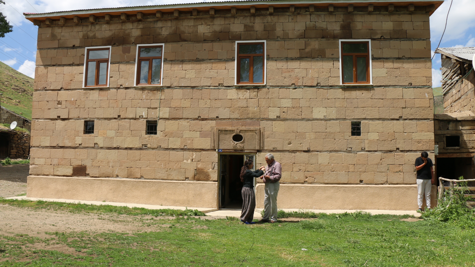 Üst kata tahta merdivenlerden çıkılan konağın ustaları Ermeni. Haydaran aşiretine bağlı olan bir konak olduğunu söyleyen Eren, “Kendi değerlerimizle yoğrulmak istiyoruz. İstanbul’a gittik, oralar bizi tatmin etmedi. Kendi köyümüze geri dönmek zorunda kaldık. Zaman zaman çocuklarımız geliyor. Dedem Hasan Ağa tarafından yapılmış” diyor.