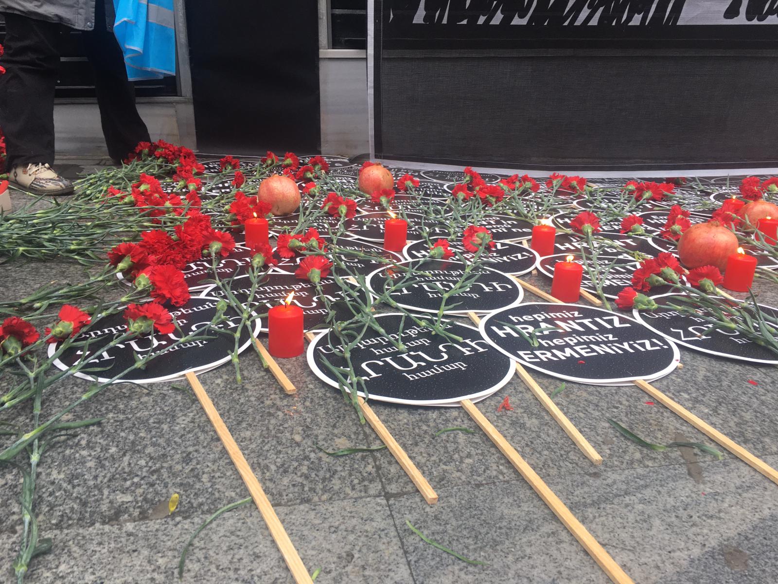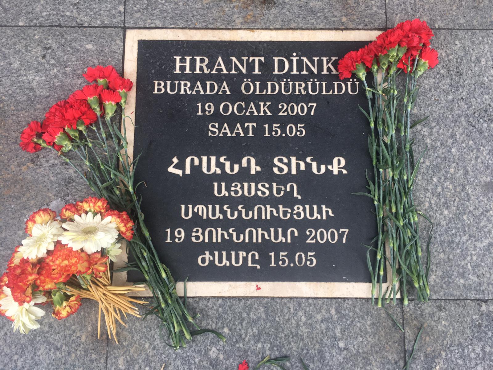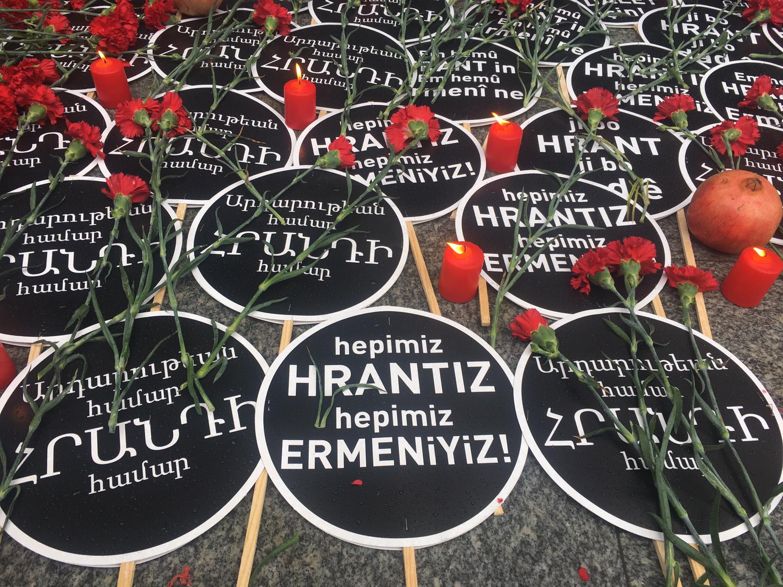 Dink’in vurulduğu gazete binası önüne mum ve karanfiller bırakılırken, ses sisteminden Ermenice ağıtlar dinletildi. Gazete binası önüne gelen kitle sık sık “Faşizme inat kardeşimsin Hrant”, “Savaşa hayır barış hemen şimdi”, “Öldür diyenler yargılansın” ve “Katil devlet hesap verecek” sloganları attı. Hrant’ın Arkadaşları adına konuşan gazeteci Bülent Aydın, gazetenin eski binasının penceresinden Dink’in faillerinin bulunması için mücadele edeceklerini vurguladı.