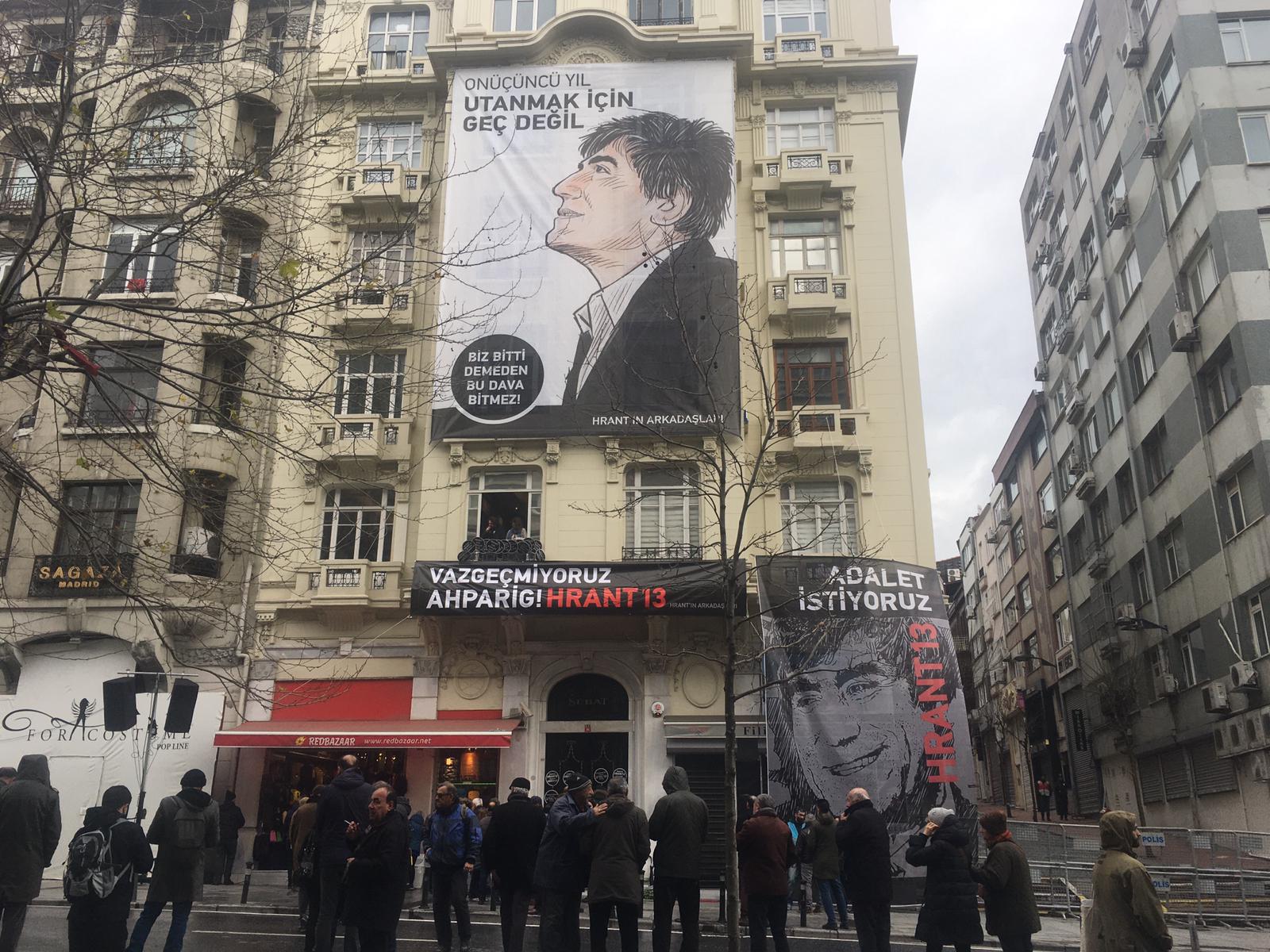 Şişli Halaskargazi Caddesi üzerindeki Agos gazetesinin eski binası önünde yapılan anmaya Dink’in eşi Rakel Dink, oğlu Arat, kızları Sera ve Delal Dink, dostları, sevenleri, Agos gazetesi çalışanları, HDP ve CHP milletvekilleri ile yüzlerce kişi katıldı. Agos gazetesi binasına “On üçüncü yıl utanmak için geç değil”, “Adalet istiyoruz Hrant 13” ve “Vazgeçmiyoruz Ahparig!” pankartları asıldı.