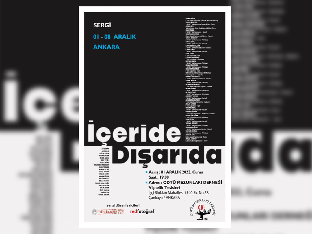 Görülmüştür Kolektifi ve Redfotoğraf Grubu tarafından hazırlanan İçeride Dışarıda adlı şiddet temalı sergi, 1 ile 8 Aralık tarihleri arasında Ankara’da sanatseverlerle buluşturulacak. Ortadoğu Teknik Üniversitesi (ODTÜ) Mezunları Derneği Vişnelik Tesisleri’nde düzenlenecek serginin açılışı, 1 Aralık Cuma günü saat 19.00’da yapılacak. Sergide, 10, 20 ve 30 yıldır cezaevlerinde olan binlerce tutuklunun eserleri sergilenecek.
