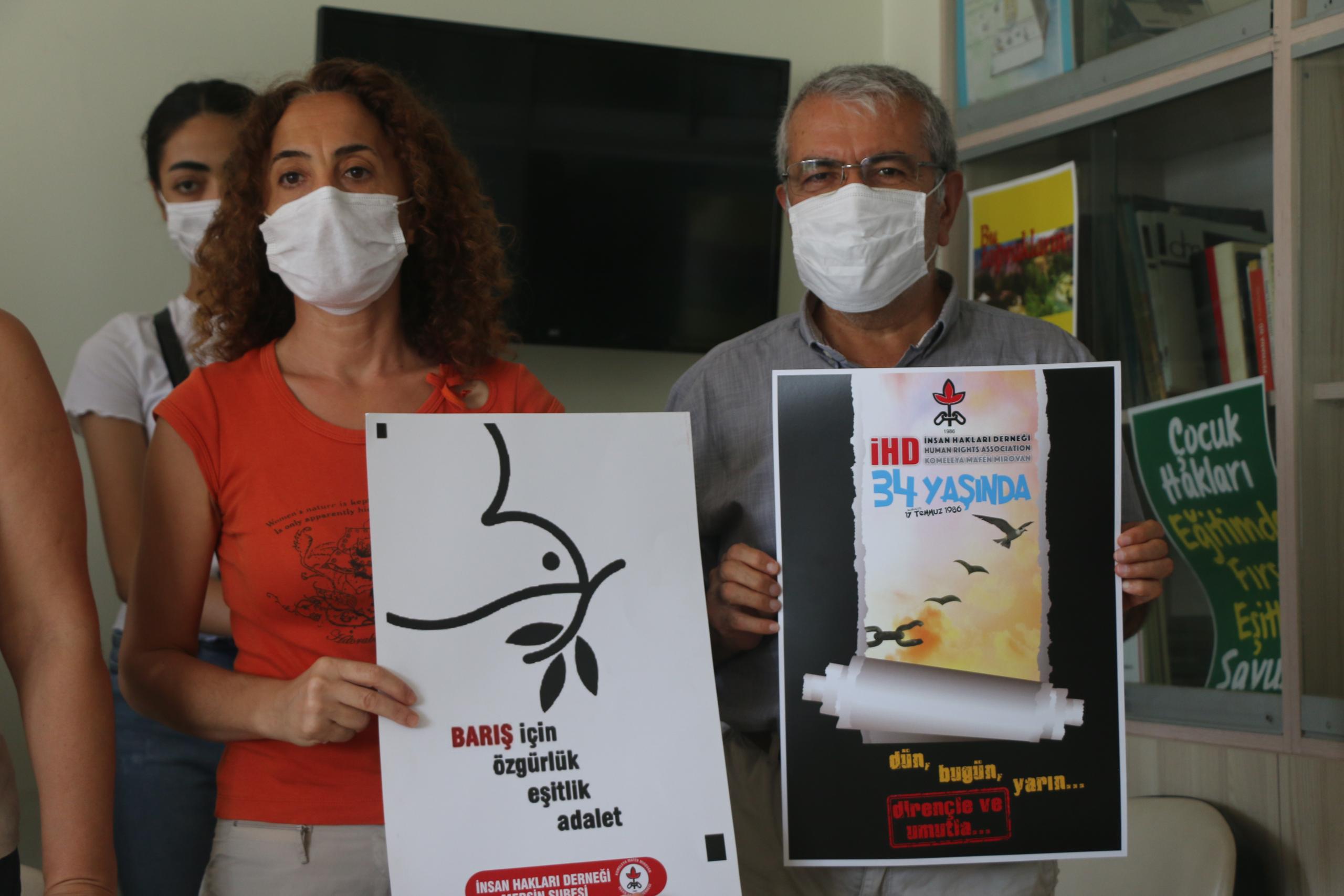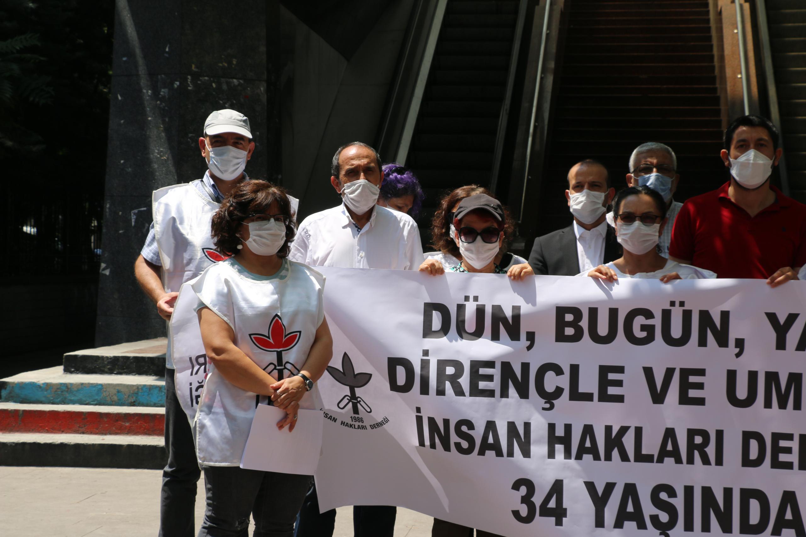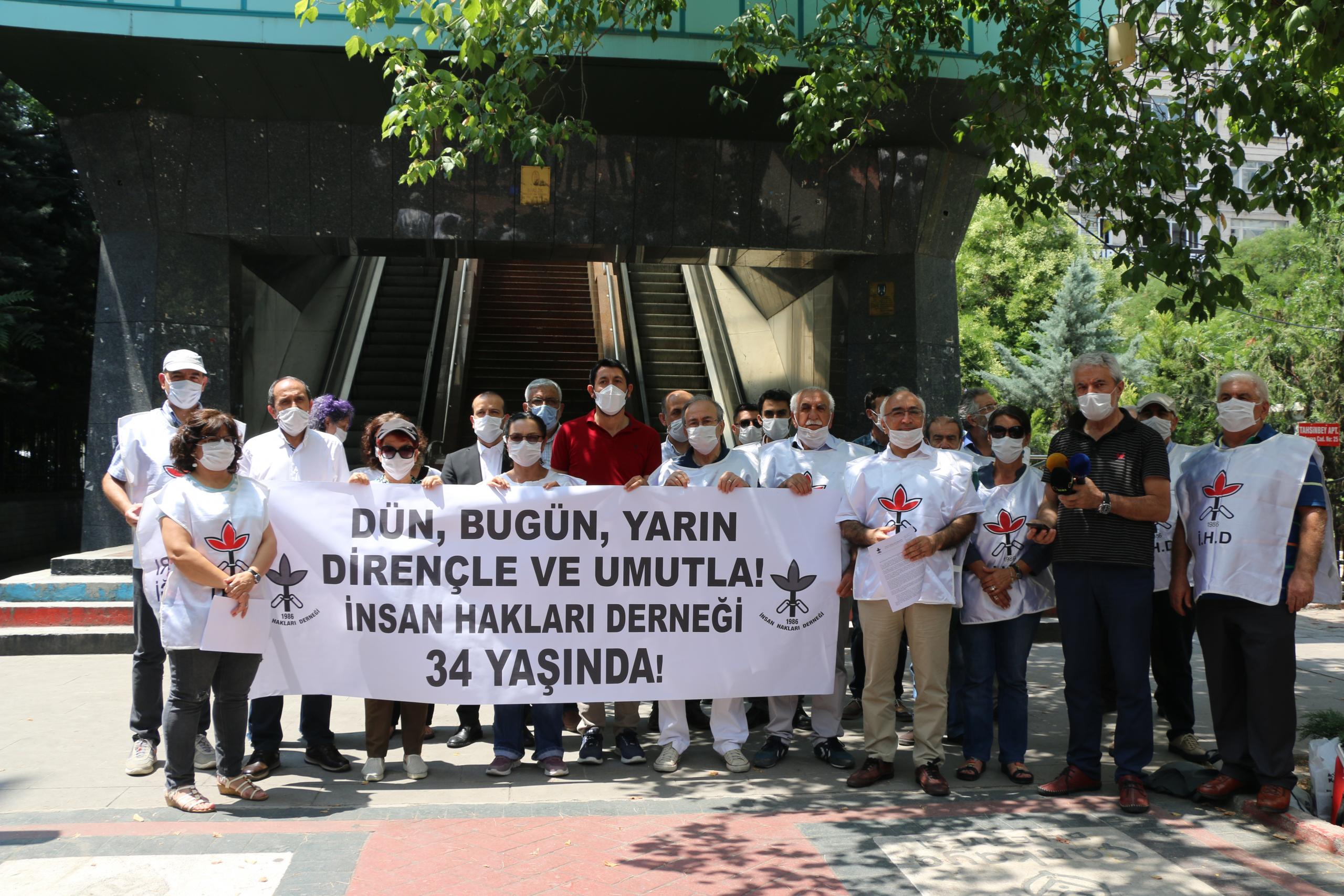İnsan Hakları Derneği’nin (İHD) kuruluşunun 34’üncü yıldönümü nedeniyle İHD Ankara, Mersin, İstanbul ve Diyarbakır başta olmak üzere bir ilde basın açıklaması düzenledi. Ankara şubenin bulunduğu Adakale Sokak’ta yapılan açıklamaya İHD Eş Genel Başkanı Öztürk Türkdoğan, Kamu Emekçileri Sendikaları Konfederasyonu (KESK) Eş Genel Başkanı Mehmet Bozgeyik, Hakların Demokratik Partisi (HDP) Milletvekilleri Hüseyin Kaçmaz ile Habib Eksik, siyasi parti temsilcileri ve onlarca insan hakları savunucusu katılırken, Mersin’de şube başkanı Hakkı Demir’in tarafından yapılan açıklamada demokratik kitle örgütü temsilcileri de hazır bulundu.