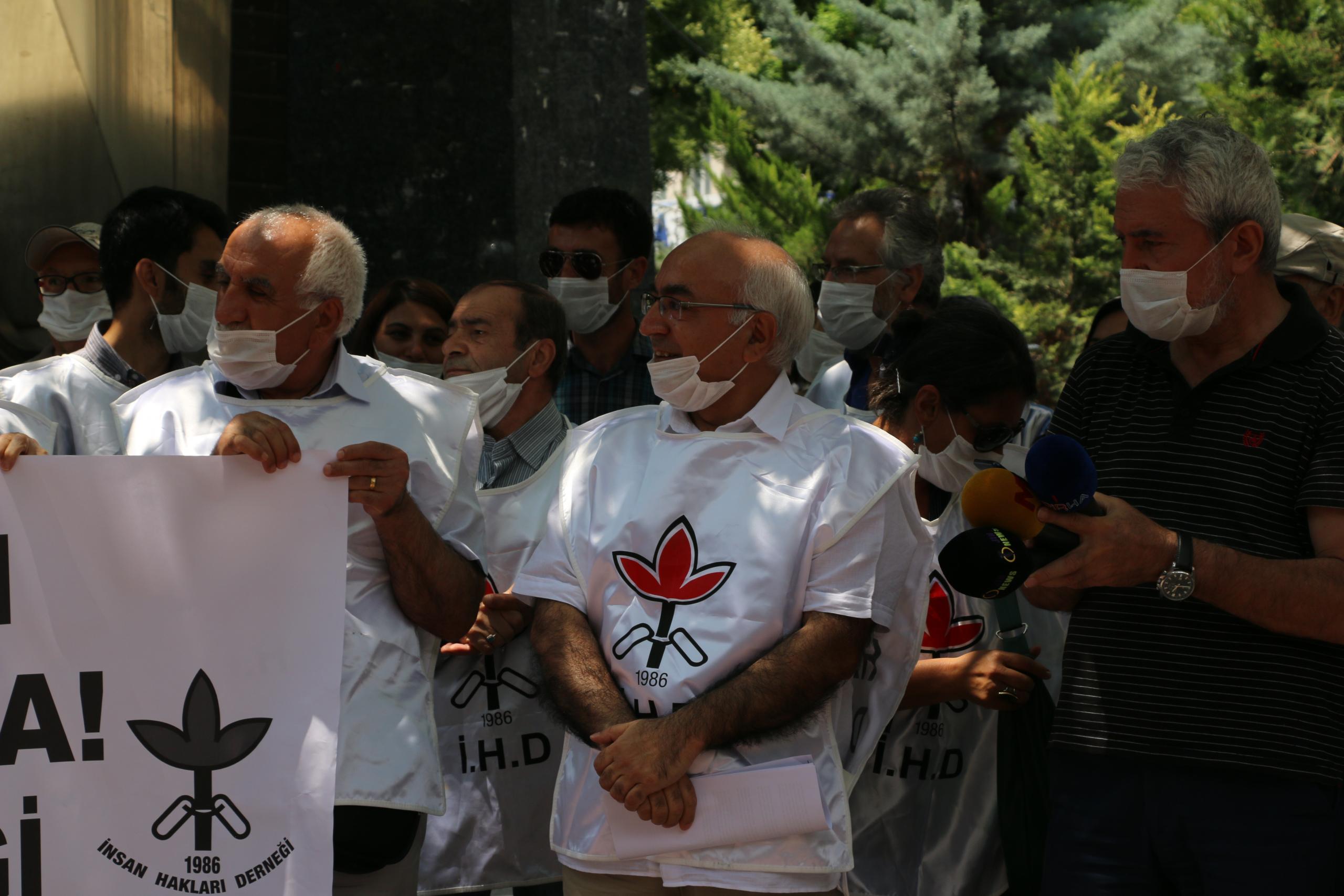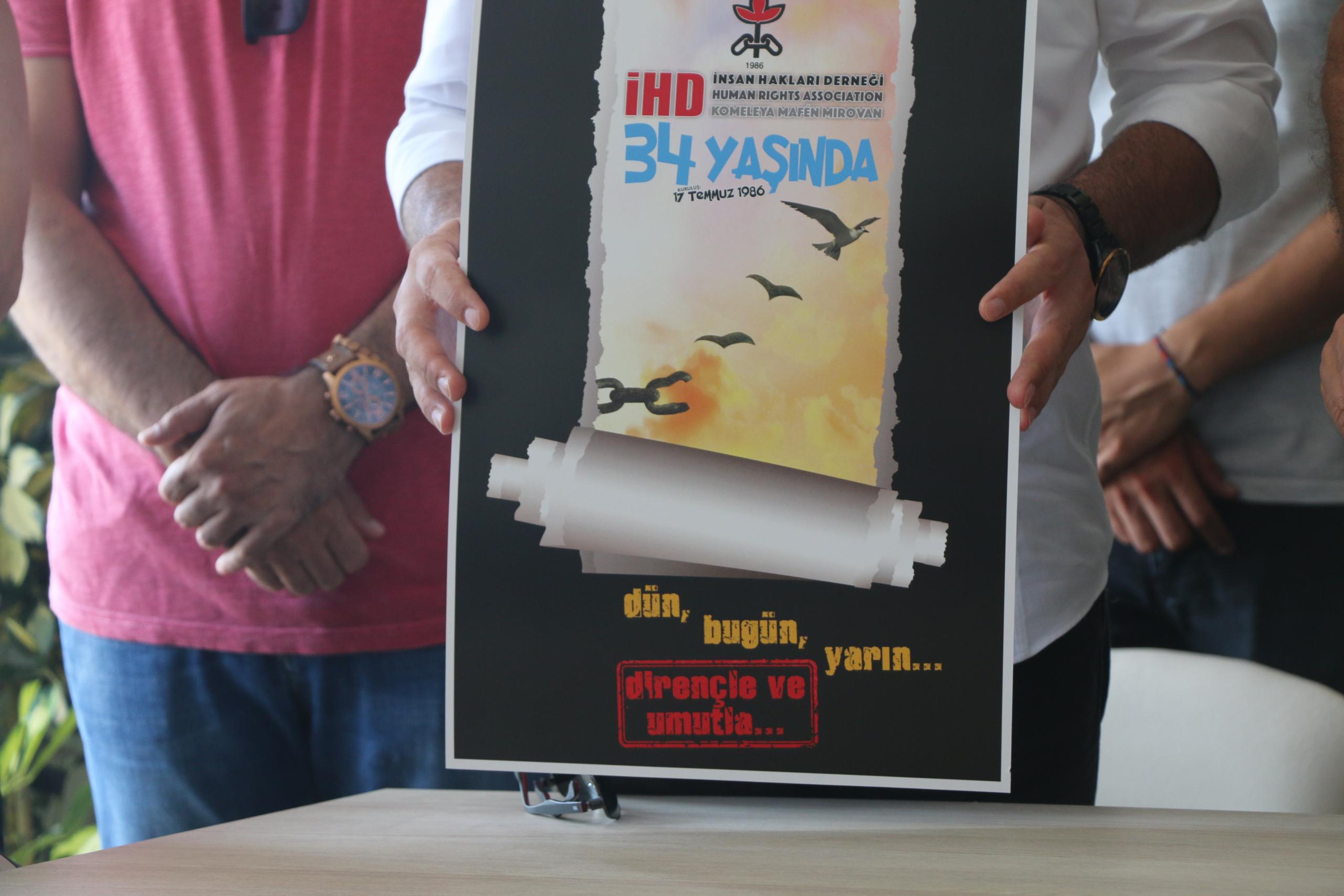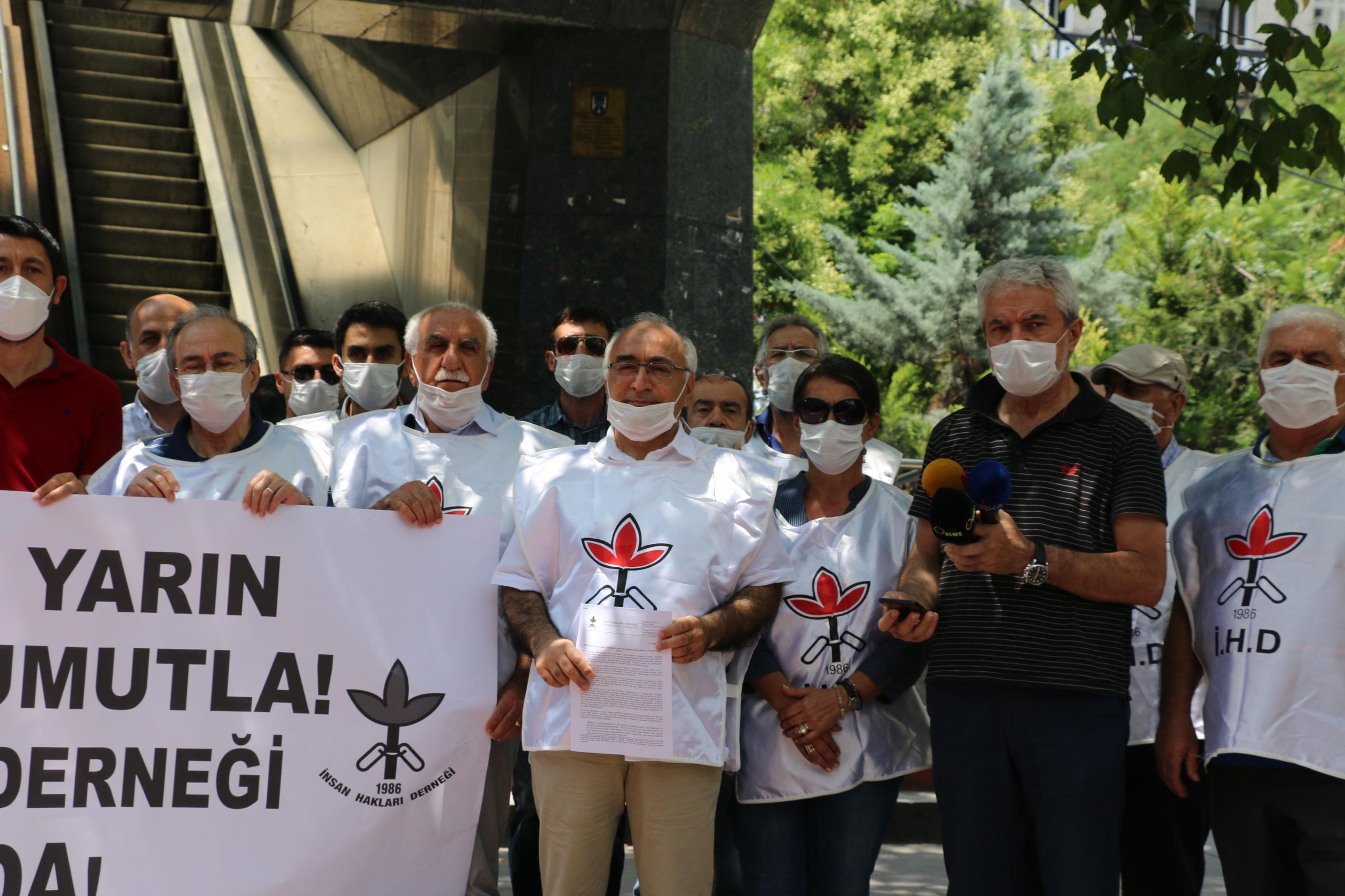 İnsan Hakları Derneği’nin (İHD) kuruluşunun 34’üncü yıldönümü nedeniyle İHD Ankara, Mersin, İstanbul ve Diyarbakır başta olmak üzere bir ilde basın açıklaması düzenledi. Ankara şubenin bulunduğu Adakale Sokak’ta yapılan açıklamaya İHD Eş Genel Başkanı Öztürk Türkdoğan, Kamu Emekçileri Sendikaları Konfederasyonu (KESK) Eş Genel Başkanı Mehmet Bozgeyik, Hakların Demokratik Partisi (HDP) Milletvekilleri Hüseyin Kaçmaz ile Habib Eksik, siyasi parti temsilcileri ve onlarca insan hakları savunucusu katılırken, Mersin’de şube başkanı Hakkı Demir’in tarafından yapılan açıklamada demokratik kitle örgütü temsilcileri de hazır bulundu.