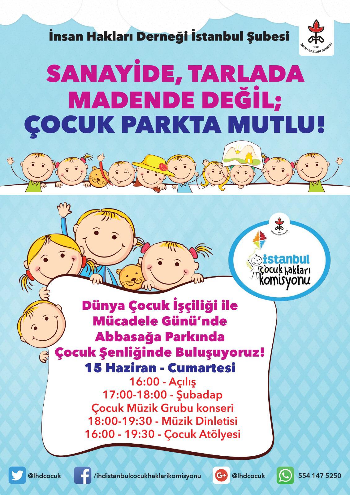 Program açılışında konuşan İHD Genel Başkanı Gülseren Yoleri, çocukların yerlerinin sanayi, tarla ve tekstil atölyeleri değil okullar, parklar olduğunu söyledi. Dünya çocuk işçi sayının artmasına vurgu yapan Yoleri çocuk hak ihlallerinin artmasıyla birlikte bunu önlemek adına mücadele edilmesi gerektiğine vurgu yaptı.Şenliğe katılım ve ilgi yoğundu, Müzik dinletisi ve danslar eşliğinde şenlik devam etti. Şenlik kapsamında Abbasağa Parkı’nda birçok atölye düzenlendi.