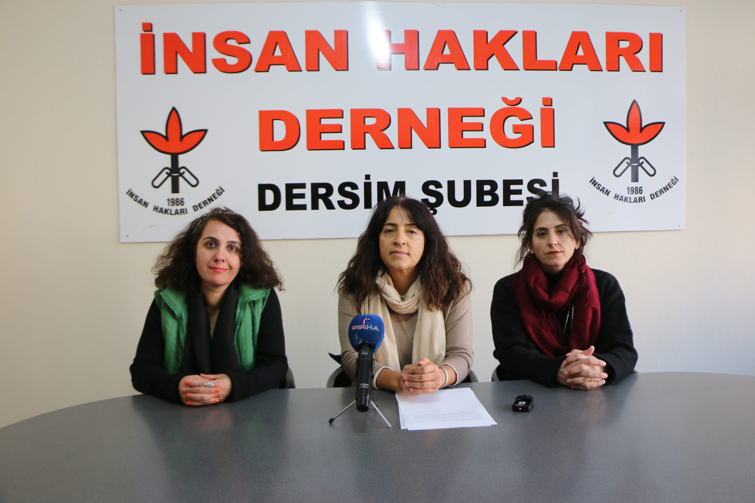PİRHA-İHD Dersim Şubesi Kadın Komisyonu, 25 Kasım Kadına Yönelik Şiddete Karşı Uluslararası Mücadele Günü’ne ilişkin dernek binasında basın toplantısı düzenledi. Yapılan açıklamada, “Kadına yönelik şiddet suçlarında cezasızlık politikası son bulmalı, etkili soruşturma ve yargılama ilkeleri güvence altına alınmalıdır” denildi.