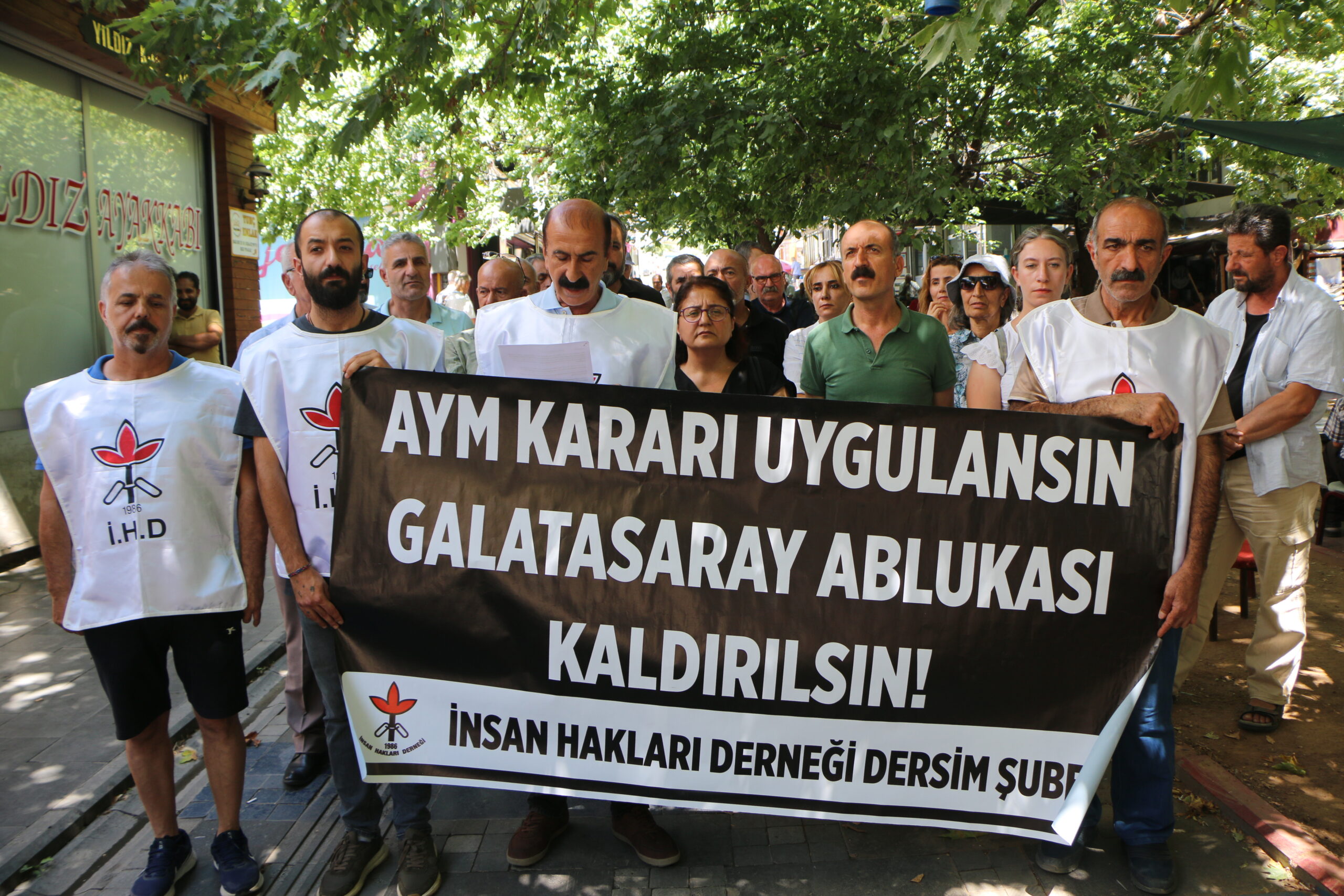 İnsan Hakları Derneği (İHD) Dersim Şubesi, Cumartesi Anneleri’nin Galatasaray meydanında her hafta ablukaya alınmasına yönelik basın açıklaması düzenledi. Kayıp yakınlarının hesabını sormak isteyen Cumartesi Annelerine Galatasaray Meydanı’nın açılması gerektiğini belirtti.