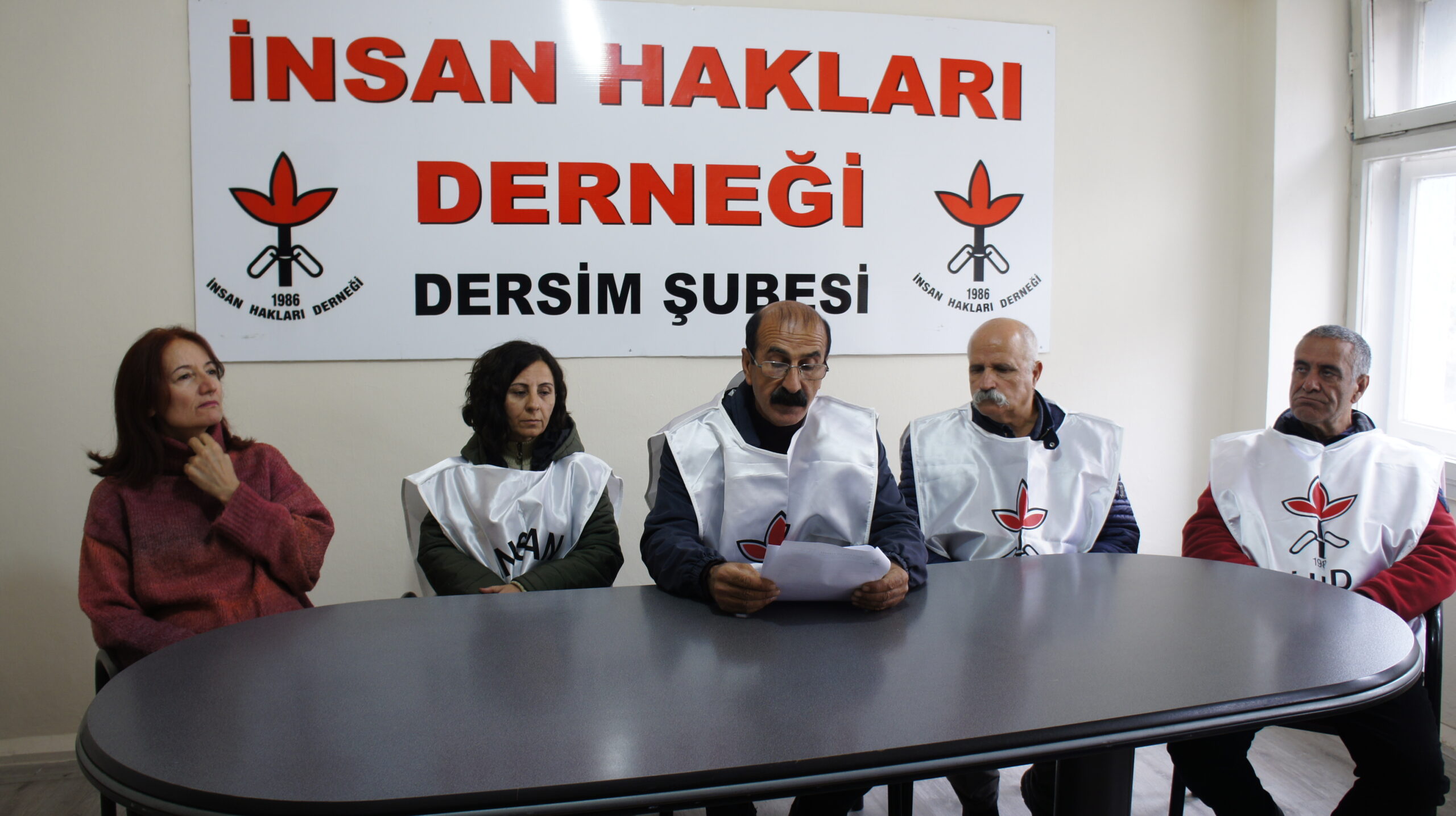 İHD Dersim Şubesi, hapishanelerdeki hak ihlallerine ilişkin şube binasında açıklama yaptı. Açıklamayı İHD Dersim Şube Eş Başkanı Gürbüz Solmaz okudu. Açıklamaya Dersim Baro Başkanı avukat Fatma Kalsen’de destek verdi.