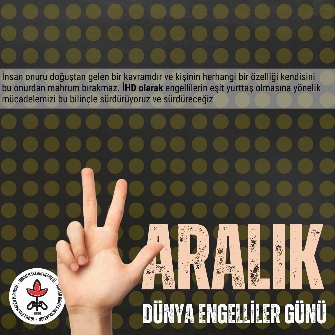 İHD açıklamasında, BM Engellilerin Haklarına İlişkin Sözleşme’nin 3 Mayıs 2008’de Genel Kurul’da kabul edilip Türkiye’de 3 Aralık 2008’de yürürlüğe girdiği hatırlatıldı. Dernek, engellilerin toplumsal, ekonomik, kültürel ve siyasal yaşamda eşit yurttaş olarak yer alabilmesi için atılması gereken adımların hâlâ eksik olduğunu vurguladı.