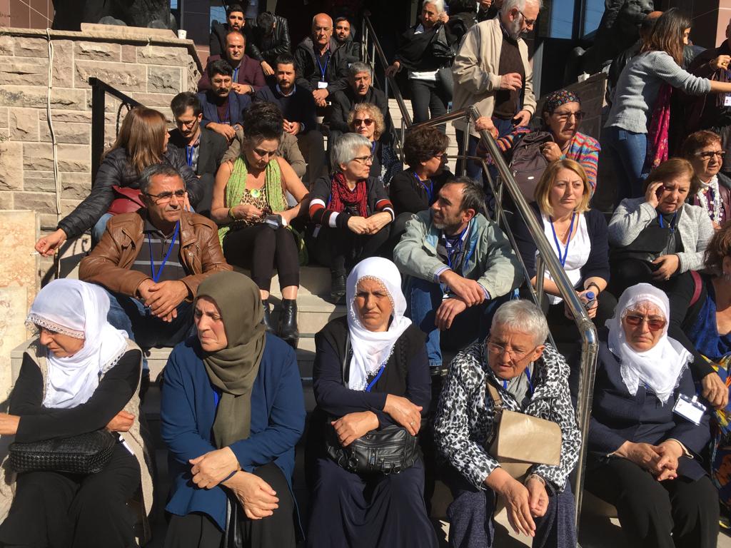 İnsan Hakları Derneği’nin 19. Genel Kurulu Ankara Hacı Bektaş Veli Anadolu Kültür Vakfı Genel Merkezi’nde devam ediyor. Cumartesi Anneleri’ne destek olmak için kurula ara verilerek dışarıda basın açıklaması yapıldı. Basın açıklamasına Cumartesi Anneleri, İHD üyeleri ve kayıp yakınları katıldı.