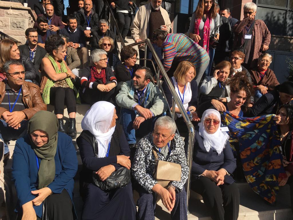 İnsan Hakları Derneği’nin 19. Genel Kurulu Ankara Hacı Bektaş Veli Anadolu Kültür Vakfı Genel Merkezi’nde devam ediyor. Cumartesi Anneleri’ne destek olmak için kurula ara verilerek dışarıda basın açıklaması yapıldı. Basın açıklamasına Cumartesi Anneleri, İHD üyeleri ve kayıp yakınları katıldı.