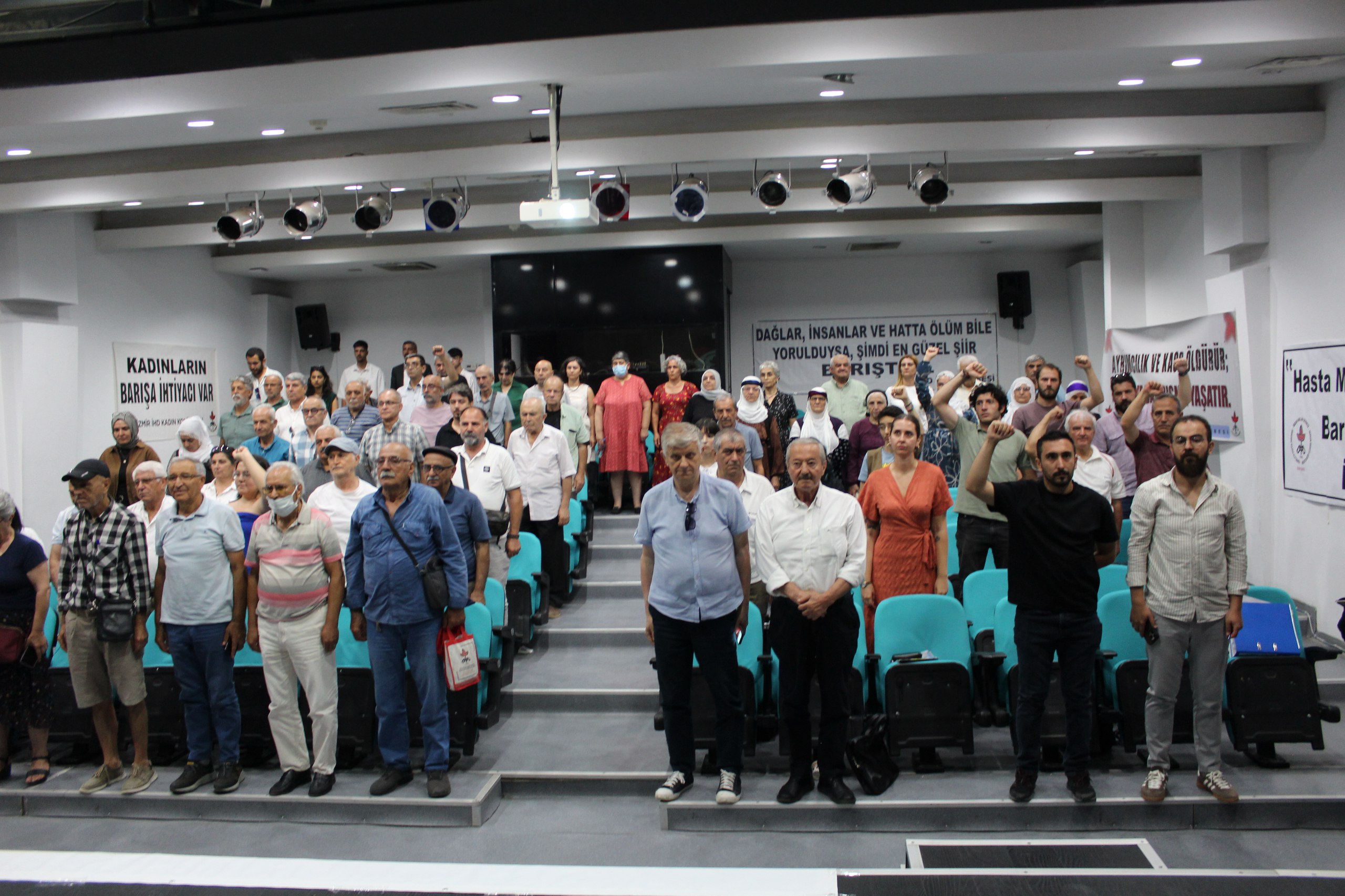 Kongrede “Artık anneler ağlamasın. Barış İstiyoruz”, “Kadınların barışa ihtiyacı var”, “Hasta mahpuslara özgürlük, barış ve adalet için insan hakları”, “İnsan hakları ile insandır” pankartları asıldı. Kongrenin divan üyeleri İHD Eş Genel Başkanı Av. Eren Keskin, İHD İzmir Şube Üyesi Av. Nehir Bilece, Faraşin Gümüş ve Barış Annesi Medine Kaymaz’dan oluştu.