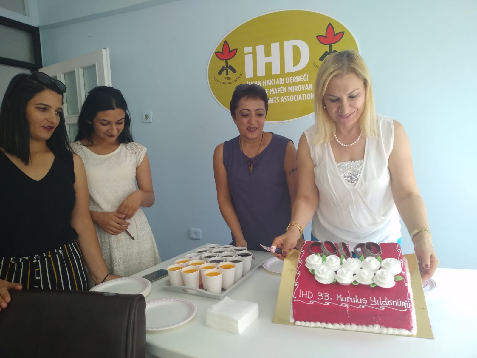 Yapılan basın açıklamasının ardından İHD’nin 33’ncü kuruluş yıl dönümü vesilesiyle pasta kesildi.