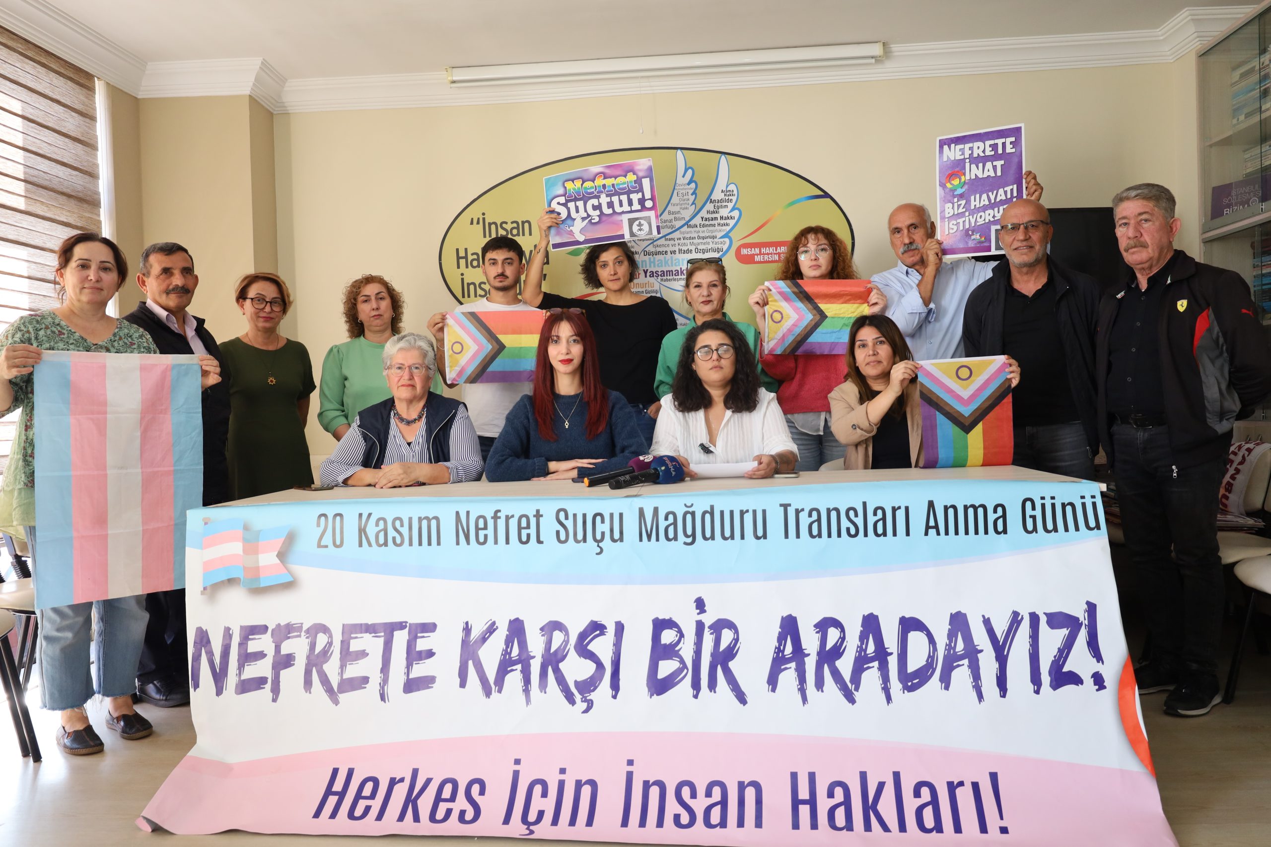 İnsan Hakları Derneği (İHD) Mersin Şubesi LGBTİ+ Komisyonu, 20 Kasım Nefret Suçu Mağduru Transları Anma Günü dolayısıyla şube binasında basın toplantısı düzenledi. Komisyon, yaptığı açıklamada Türkiye’de transların yalnızca cinsiyet kimlikleri nedeniyle öldürüldüğünü, ağır şiddete maruz bırakıldığını, barınma ve sağlık haklarının sistematik biçimde engellendiğini vurguladı.