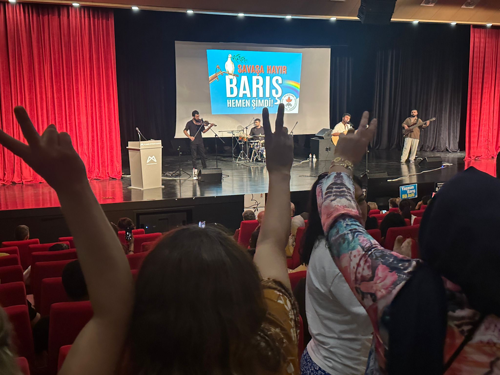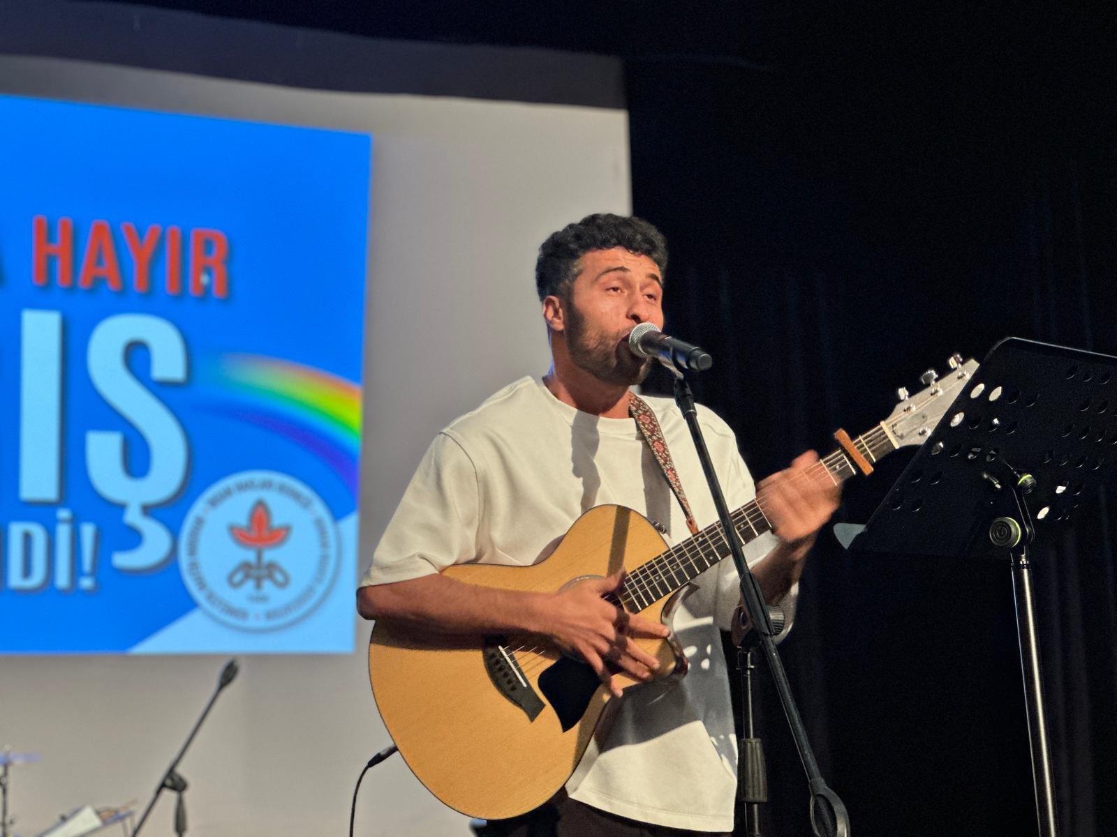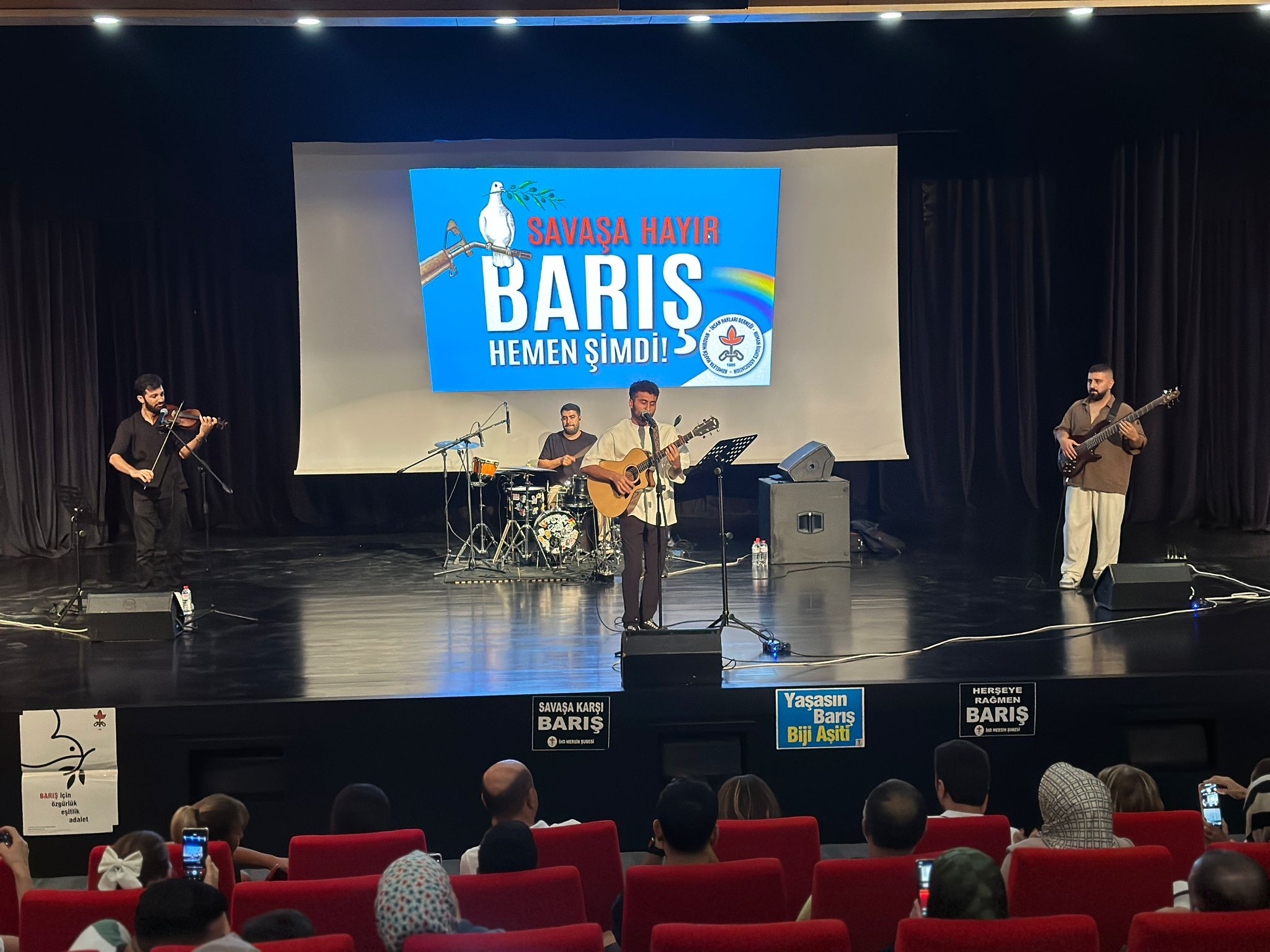 Konuşmanın ardından Seyidxan Sevinç sahneye çıkarak sevilen şarkıları barış için seslendirdi.