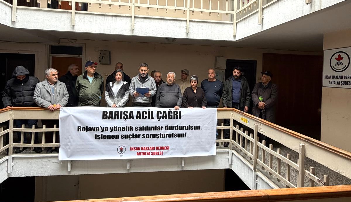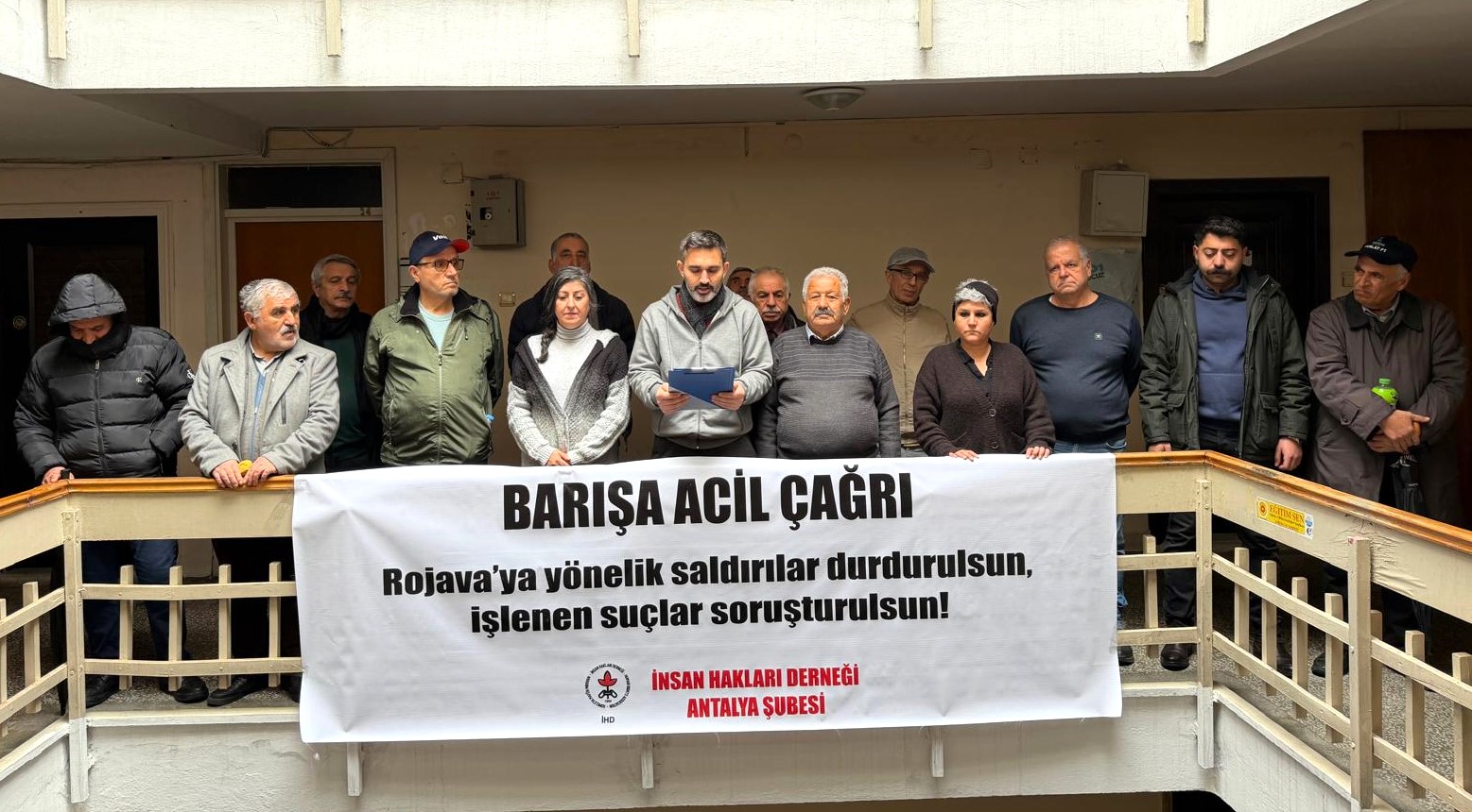 Antalya’da yapılan açıklamayı İHD Şube Eş Başkanı Av.Mahir Önal okudu. Önal, Kobanê’nin IŞİD’e karşı savaşta sembolik bir anlamı olduğuna işaret ederek, “Bu vesile ile bir kez daha başta Türkiye olmak üzere BM’ye üye bütün devletlere ve uluslararası kurumlara çağrıda bulunuyoruz: Suriye’de yaşanan kıyıma ve kırıma izleyici kalınmamalı, Kürtlere yönelik saldırılar derhal durdurulmalıdır” dedi.