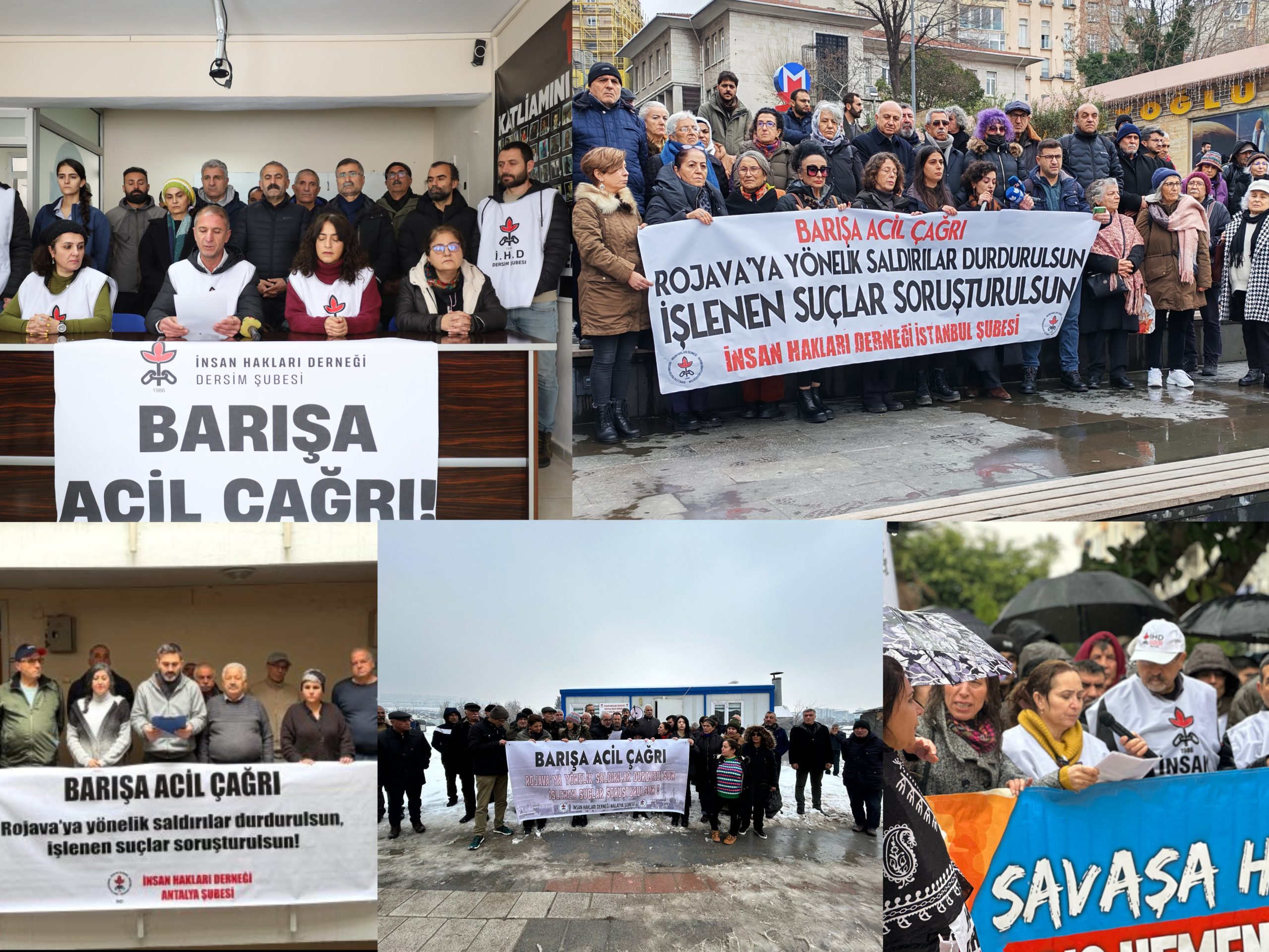 İnsan Hakları Derneği (İHD), Kuzey ve Doğu Suriye’ye yönelik saldırılara karşı Türkiye’nin birçok kentinde eş zamanlı basın açıklamaları yaptı.