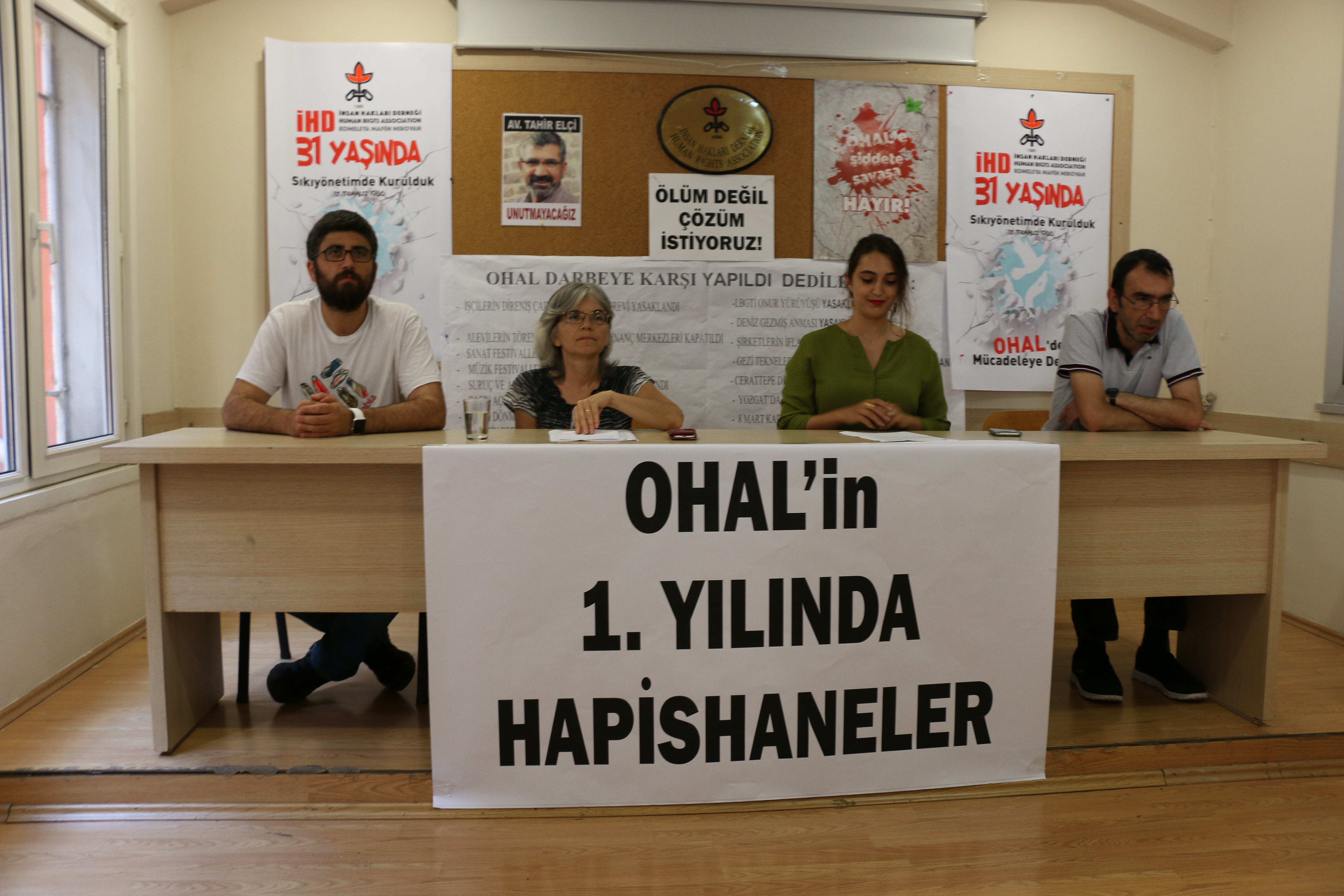 İnsan Hakları Derneği (İHD) İstanbul Şubesi Hapishane Komisyonu OHAL boyunca cezaevinde yaşananlara ilişkin basın toplantısı yaptı. “OHAL’in 1’inci yılında hapishaneler” pankartının açıldığı şube binasında gerçekleştirilen toplantıda Hapishane Komisyonu üyeleri de hazır bulundu.