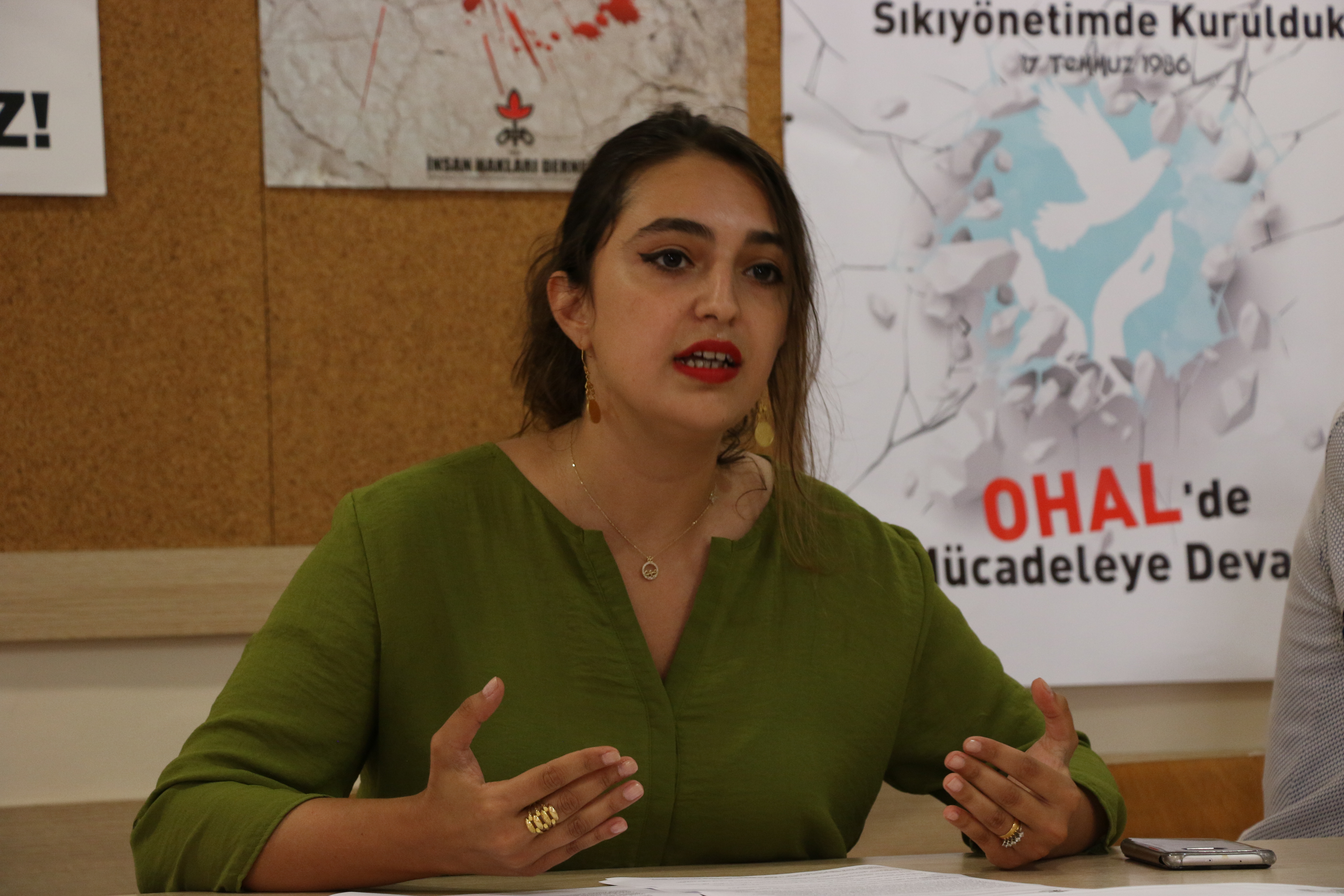 Konuşmanın ardından basın açıklamasını okuyan Avukat Zeynep Ceren Boztoprak, son bir yılda cezaevlerinde yaşanan hak ihlallerine değindi. Boztoprak, son bir yıldır özellikle “çıplak arama” uygulamasının sık başvurulan bir taciz haline getirildiğini, avukat ve aile görüşlerinde hukuka uygun olmayan kısıtlamalar yaşandığını da belirtti. Sürekli uzatılan OHAL ve buna bağlı olarak devam eden KHK’lerle insan hak ve özgürlüklerini savunan insanların da baskı, işkence ve her türlü yasadışı uygulamaya maruz bırakılmasının kabul edilemeyeceğini vurgulayan Boztoprak, İHD olarak içeride ve dışarıda yaşatılan her türlü hak ihlaline karşı mücadele edeceklerini dile getirdi.