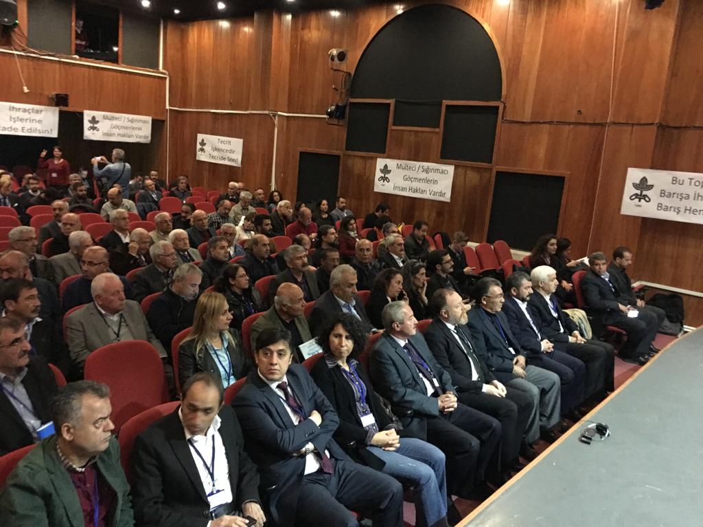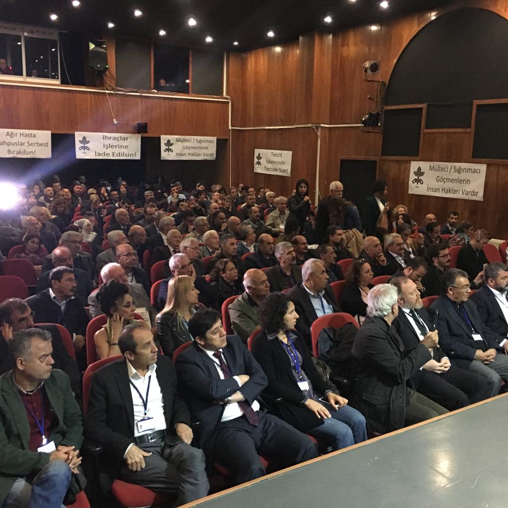 İnsan Hakları Derneği’nin 19. Genel Kurulu başladı. Ankara HBVAKV binasında iki gün sürecek genel kurula HDP Eş Genel Başkanı Sezai Temelli, HDP MYK Üyesi Eren Keskin, Eş Başkan Mehmet Bozgeyik ve MYK üyeleri, Halkevleri Genel başkanı, CHP Milletvekilleri ve çok sayıda kişi katıldı. Genel kurulun yapıldığı salona ‘İnsanlık onuru işkenceyi yenecek,’ ‘Tecrit işkencedir, tecride son’ ‘Bu toprakların barışa ihtiyacı var, hemen şimdi barış’ ‘İhraçlar işlerine iade edildin’ ‘Ağır hasta mapuslar serbest bırakılsın’ dövizleri asıldı.