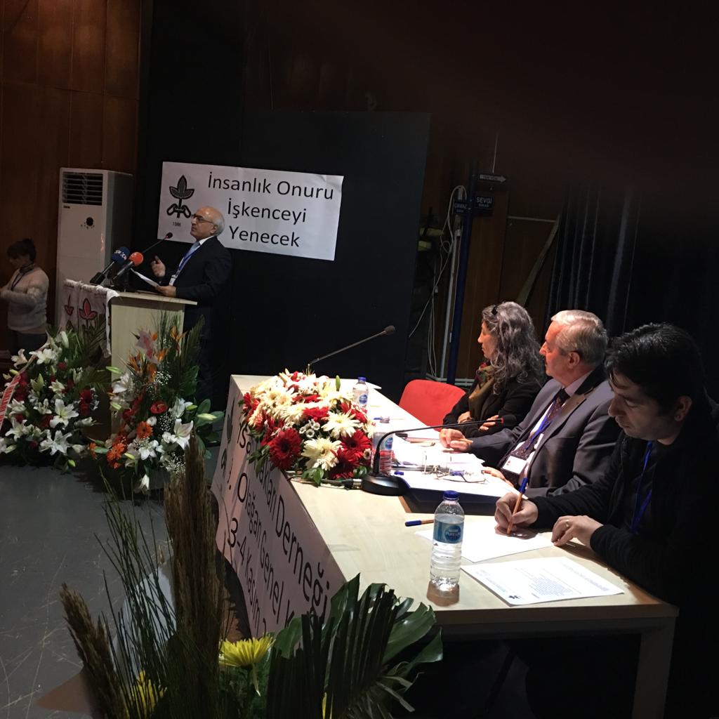 Kurulda konuşan Eş Genel Başkan Öztürk Türdoğan, “İnsan Hakları Evrensel Bildirgesi’nin 70’inci yılında maalesef Türkiye ve dünyada insan haklarının araçsallaştığı bir dönemi yaşıyoruz. 32 yıl sonra yeniden katı ve otoriter dönemde insan haklarını savunuyoruz. İnsan haklarını savunmaya devam edeceğiz. 32 yıldır insan haklarını ve demokrasiyi hatırlatmaya nasıl devam ettiysek bundan sonra da, mücadele etmeye devam edeceğiz” dedi. Görev yaptıkları 2 yıl boyunca OHAL rejiminde bir süreç geçirdiklerini hatırlatan Türkdoğan, “OHAL’in uygulandığı dönemde Türkiye rejimi değişmiş, otoriter başkanlık rejimi getirilmiştir. AKP, Türk ulus devletinin resmi ideolojisini yaşatmaya devam etmektedir” diye konuştu.