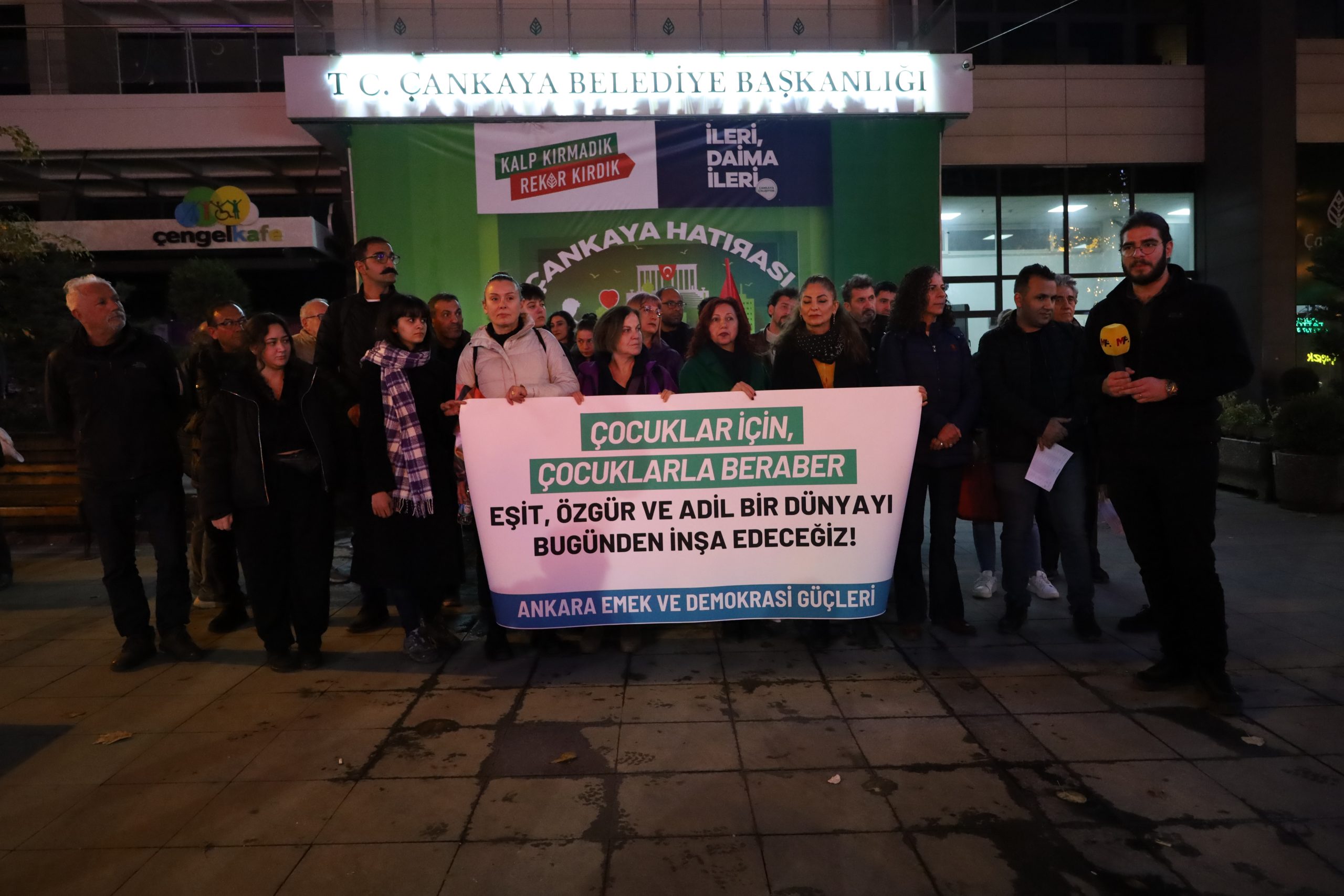 Ankara Emek ve Demokrasi Güçleri, 20 Kasım Dünya Çocuk Hakları günü vesilesiyle Sakarya Caddesi’nde basın açıklaması düzenledi. Açıklamada “Çocuklar için, çocuklarla beraber eşit, özgür ve adil bir dünyayı inşa edeceğiz” yazılı pankart açıldı. Açıklamayı DEM Parti Ankara Kadın Meclisi Sözcüsü Nebahat Çalpan yaptı.