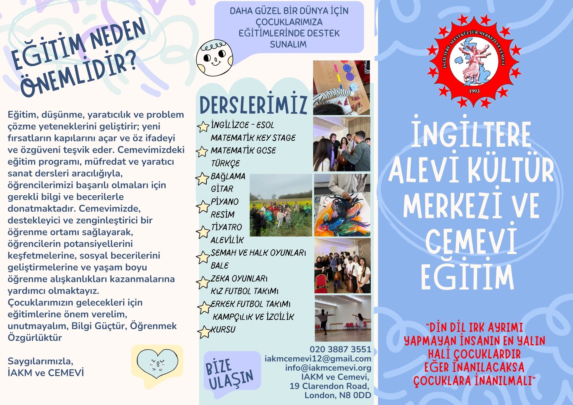 “Eğitim, düşünme, yaratıcılık ve problem çözme yeteneklerini geliştirir, yeni fırsatların kapılarını açar ve öz ifadeyi ve özgüveni geliştirir. Cemevimizdeki eğitim programı, müfredat ve yaratıcı sanat dersleri aracılığıyla, öğrencilerimizi başarılı olmaları için gerekli bilgi ve becerilerle donatmaktadır. Cemevimizde, destekleyici ve zenginleştirici bir öğrenme ortamı sağlayarak, öğrencilerin potansiyellerini keşfetmelerine, sosyal becerilerini geliştirmelerine ve yaşam boyu öğrenme alışkanlıkları kazanmalarına yardımcı olmaktayız. Çocuklarımızın gelecekleri için eğitimlerine önem verelim, unutmayalım, Bilgi güçtür, öğrenmek özgürlüktür.”