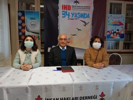İHD Eş Genel Başkanı Öztürk Türkdoğan’ın 19 Mart 2021’de gözaltına alınıp serbest bırakılması üzerine açıklama yapıldı. İHD Genel Merkezinde yapılan basın toplantısına MYK üyeleri de katıldı.