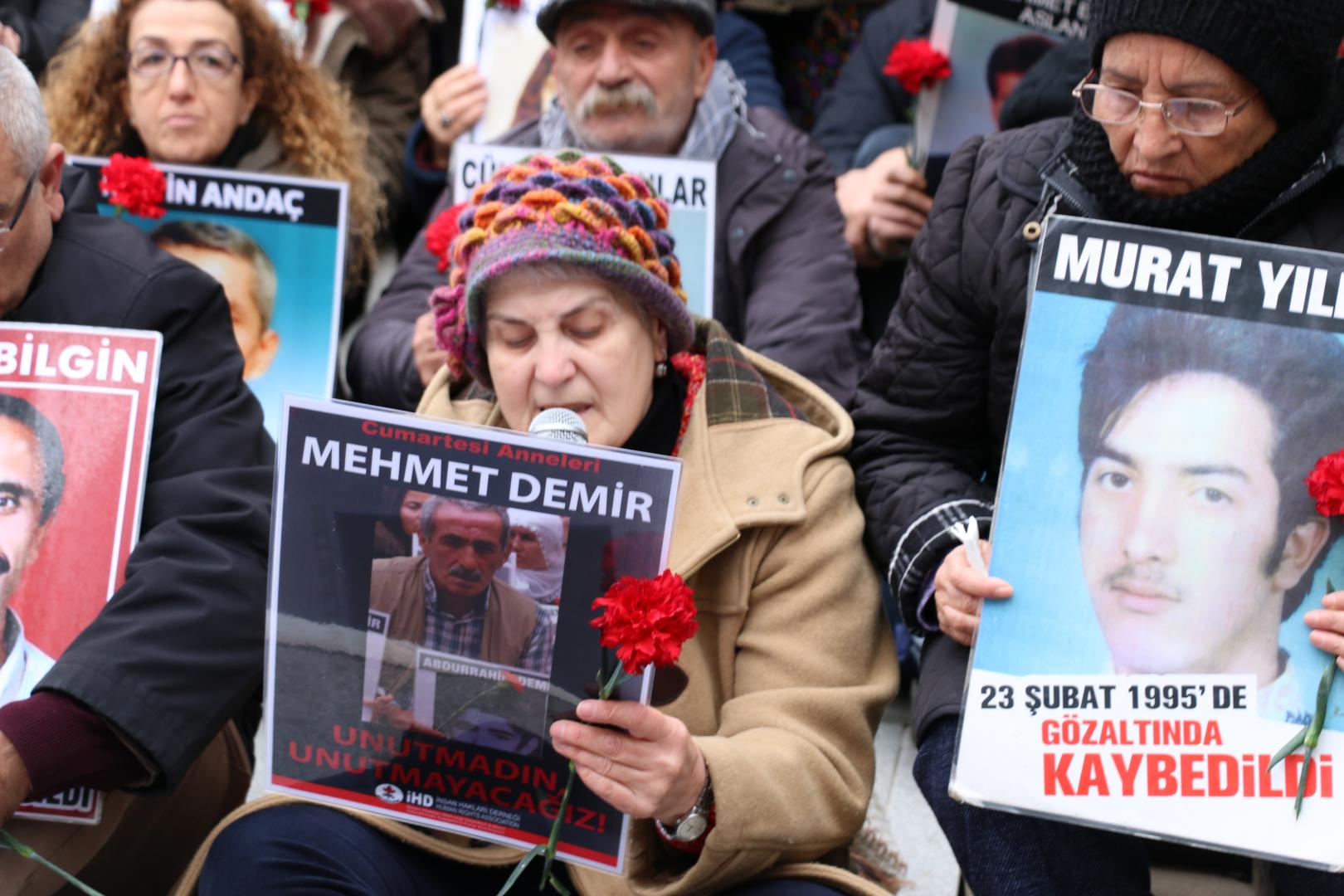 PİRHA – Cumartesi Anneleri 670. haftada da kayıp yakınlarının akıbetini sormak için Galatasaray Meydanı’nda bir araya geldiler. Anneler, gözaltında kaybedilen Abdurahman Demir’in abisi Mehmet Demir’in hayatını kaybettiği haberini acıyla paylaştı. Bu hafta 1995 yılında gözaltında kaybedilen 17 yaşındaki Mehmet Şirin Maltu’yu kaybedenlerin bulunması talep etti.