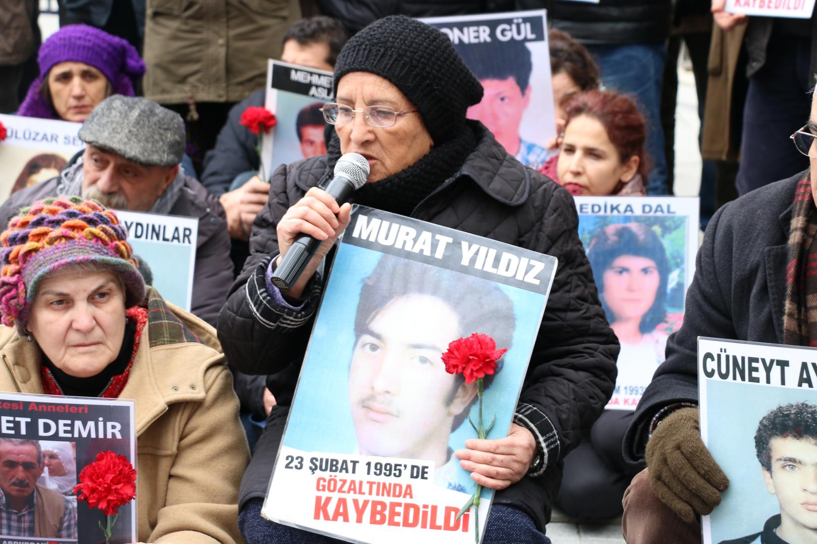 22 yıldır Galatasaray’dan seslendiklerini söyleyen Yıldız, “Zalimlerinizi ortaya çıkarın. Bizim kayıpların akıbetini açıklayın. Bizler bir gün tek tek ayrılacağız ama insanlık bu meydanı unutmayacak” dedi.