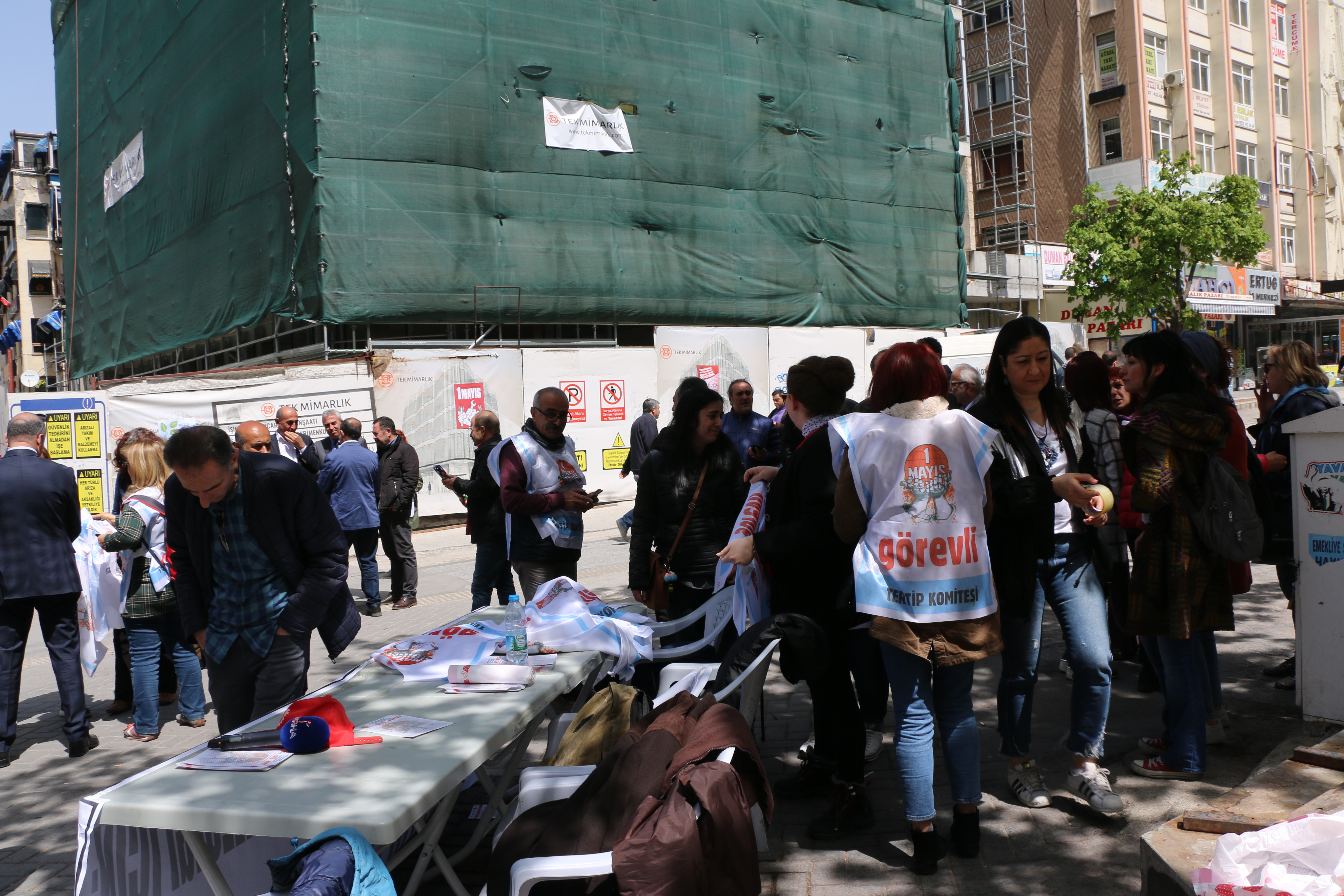 PİRHA – Emek ve meslek örgütleri 1 Mayıs öncesinde Kızılay’da stant açarak bildiri dağıttı.