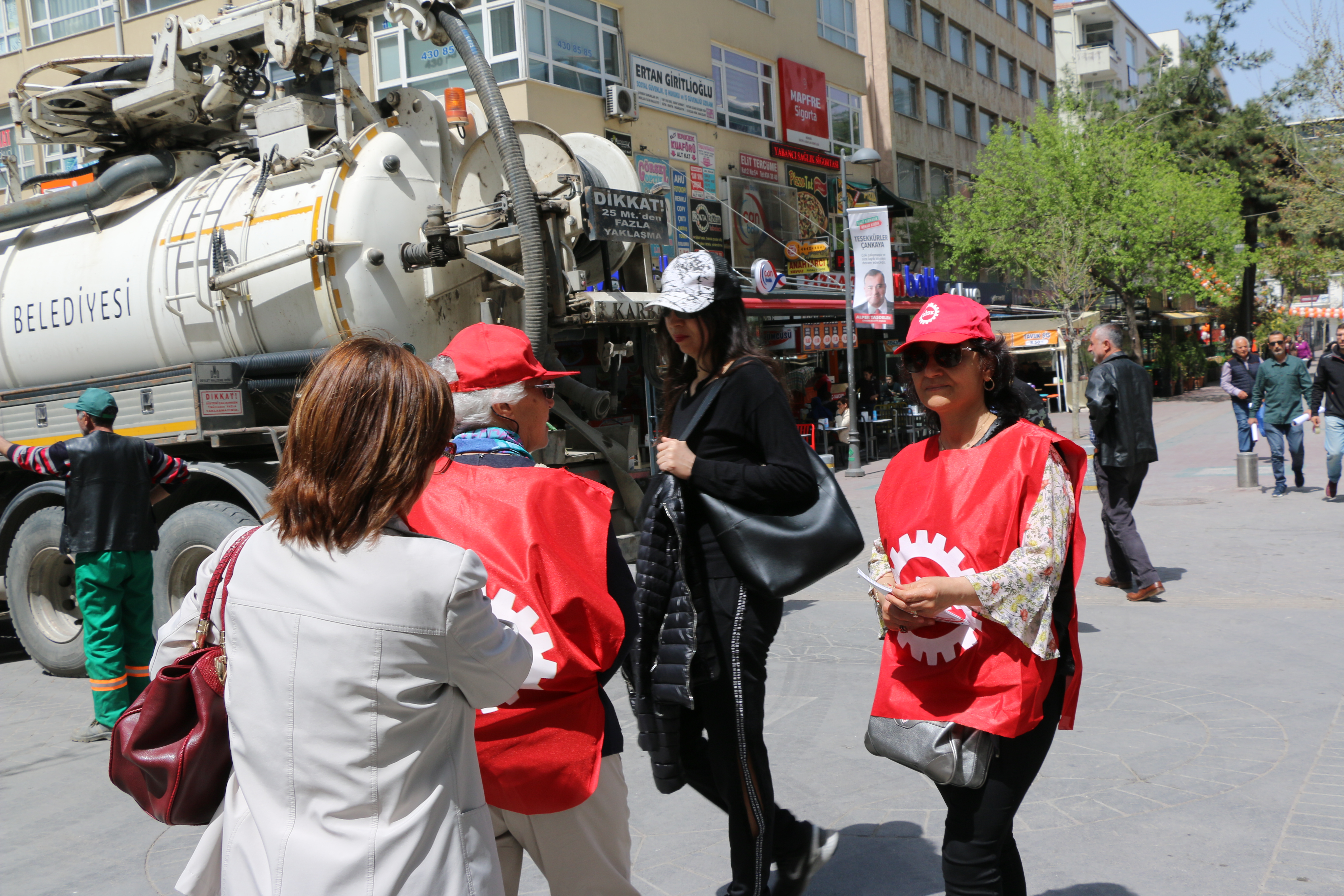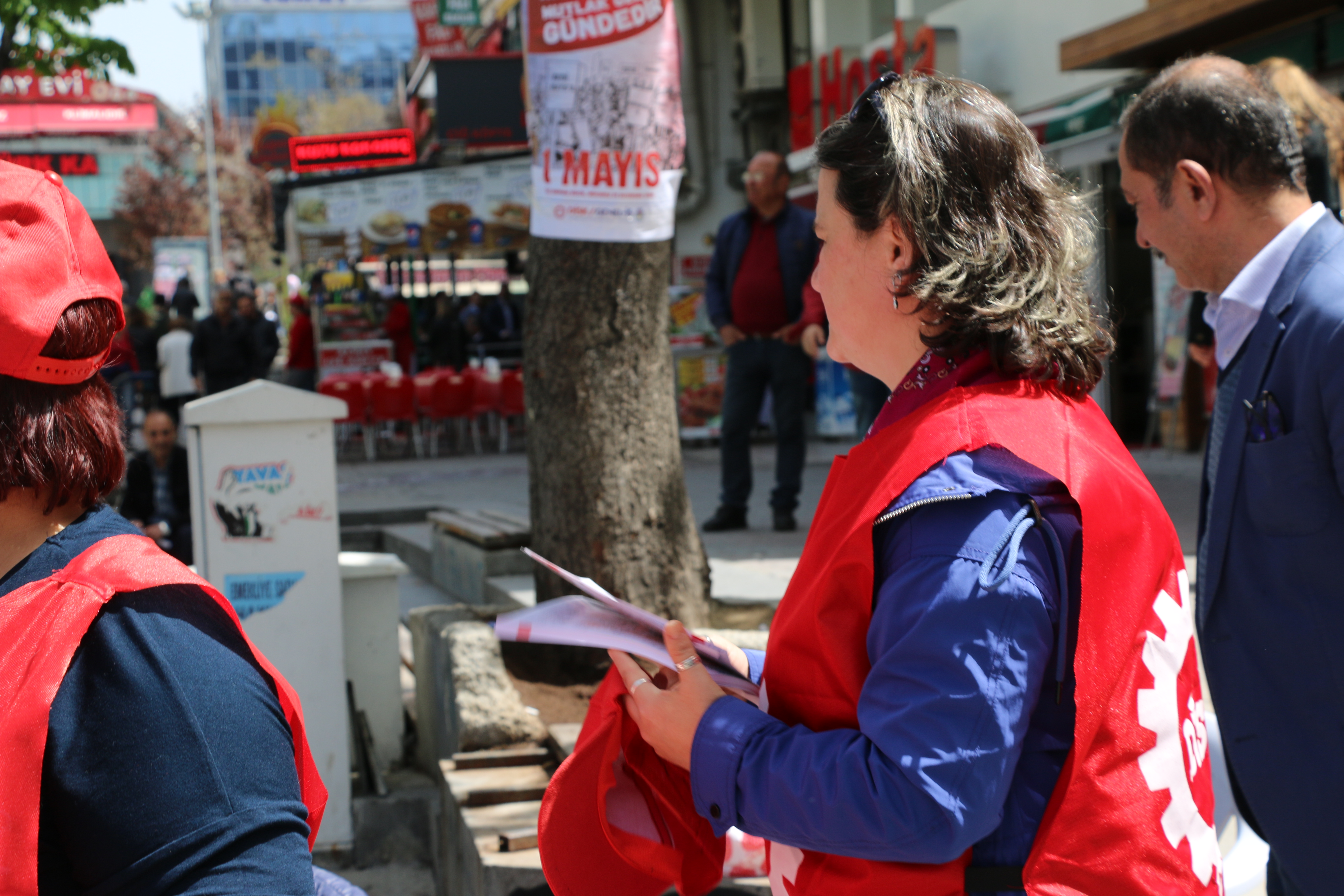 DİSK, KESK, TTB, TMMOB ve çok sayıda emek ve meslek örgütü 1 Mayıs İşçi Bayramı öncesinde Ankara Kızılay’da stant açarak bildiri dağıttı.