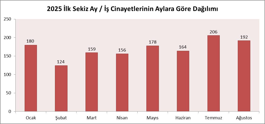 İş cinayetlerinin en çok yaşandığı iller sırasıyla İstanbul (19), Mersin (10), Ankara (9), Bursa (7), Hatay (6) ve İzmir (6) oldu.