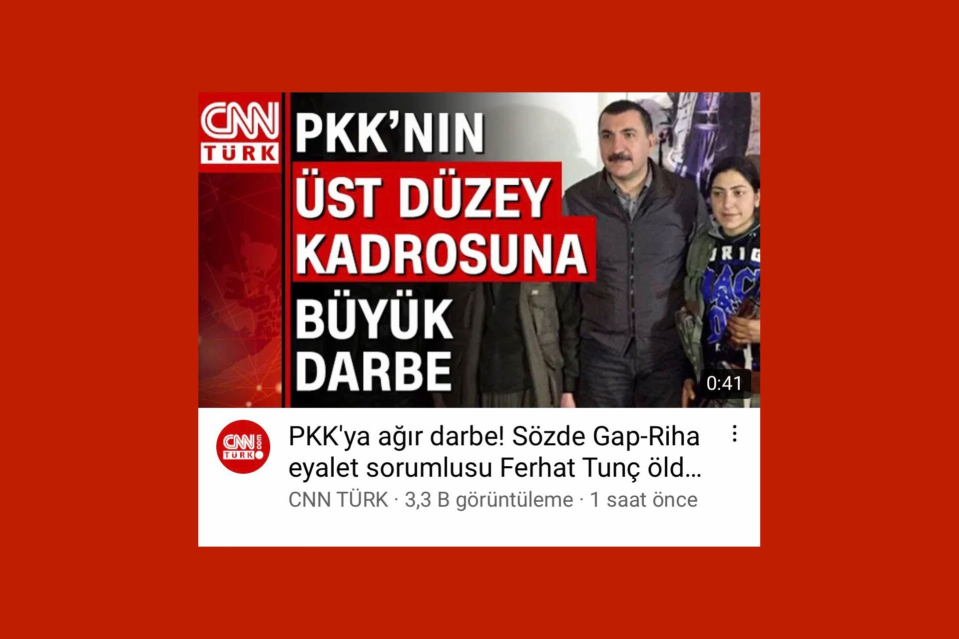 CNN Türk, İçişleri Bakanı Süleyman Soylu’nun PKK’li Ferhat Tunç’un öldürüldüğü açıklamasını Sanatçı Ferhat Tunç’un fotoğrafıyla haberleştirdi.